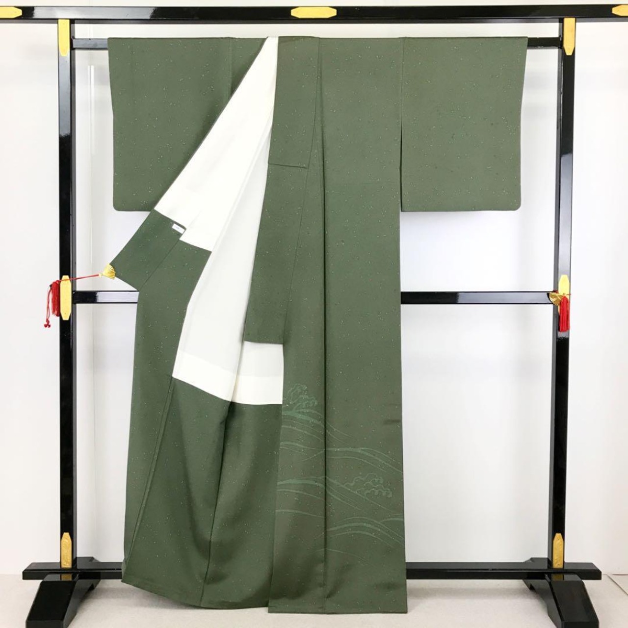 付下げ 作家物 典泉作 波 トールサイズ ガード加工 八掛に飛翔鶴 K-2011