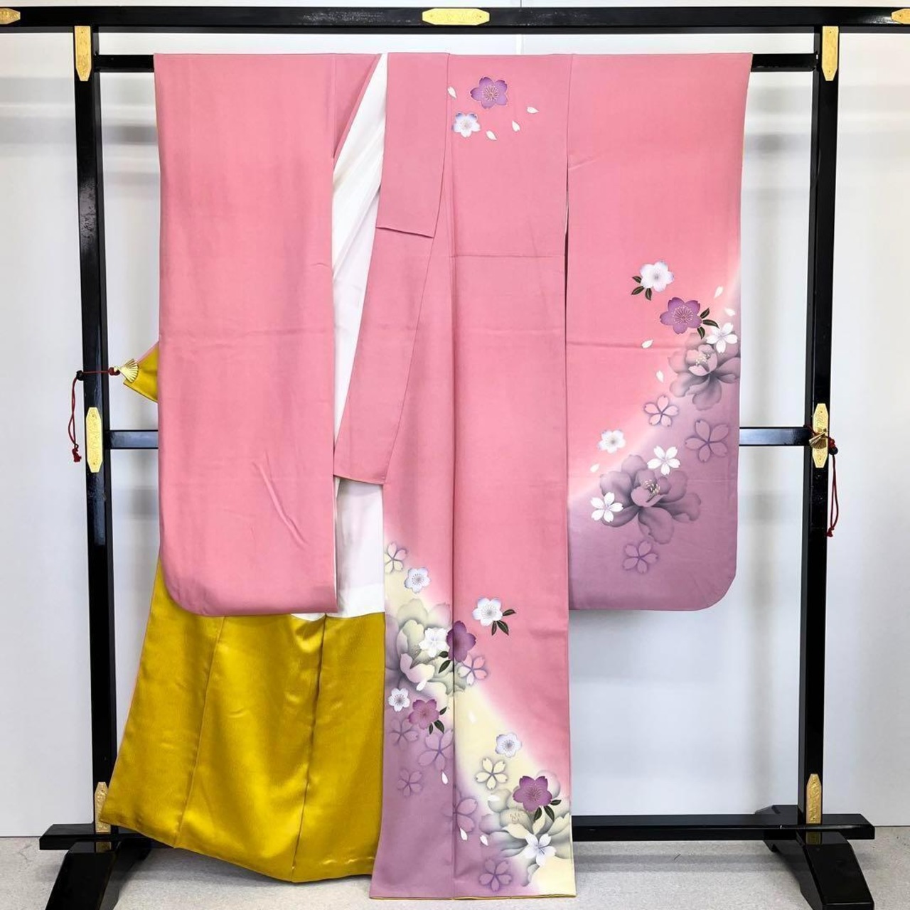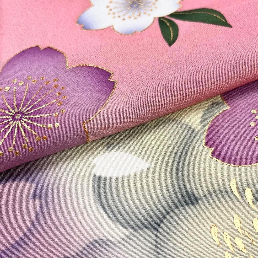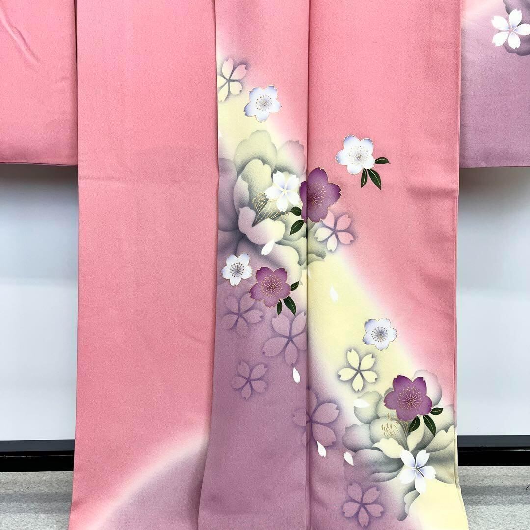 上品なピンク色にグラデーション桜の花や牡丹がデザインされた品のあるお品でございます。
