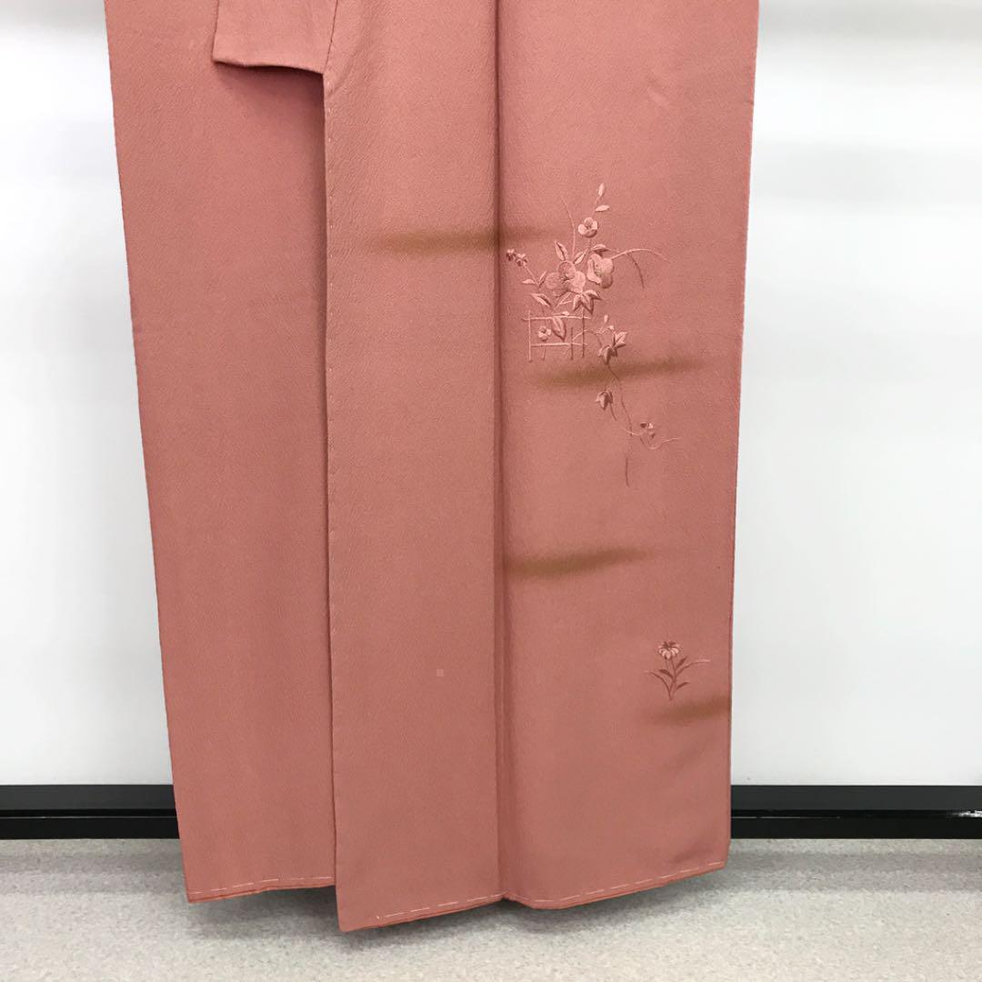 付下げ 色無地 上品な花の刺繍 浅蘇芳色 ガード加工 しつけ糸 K-2238