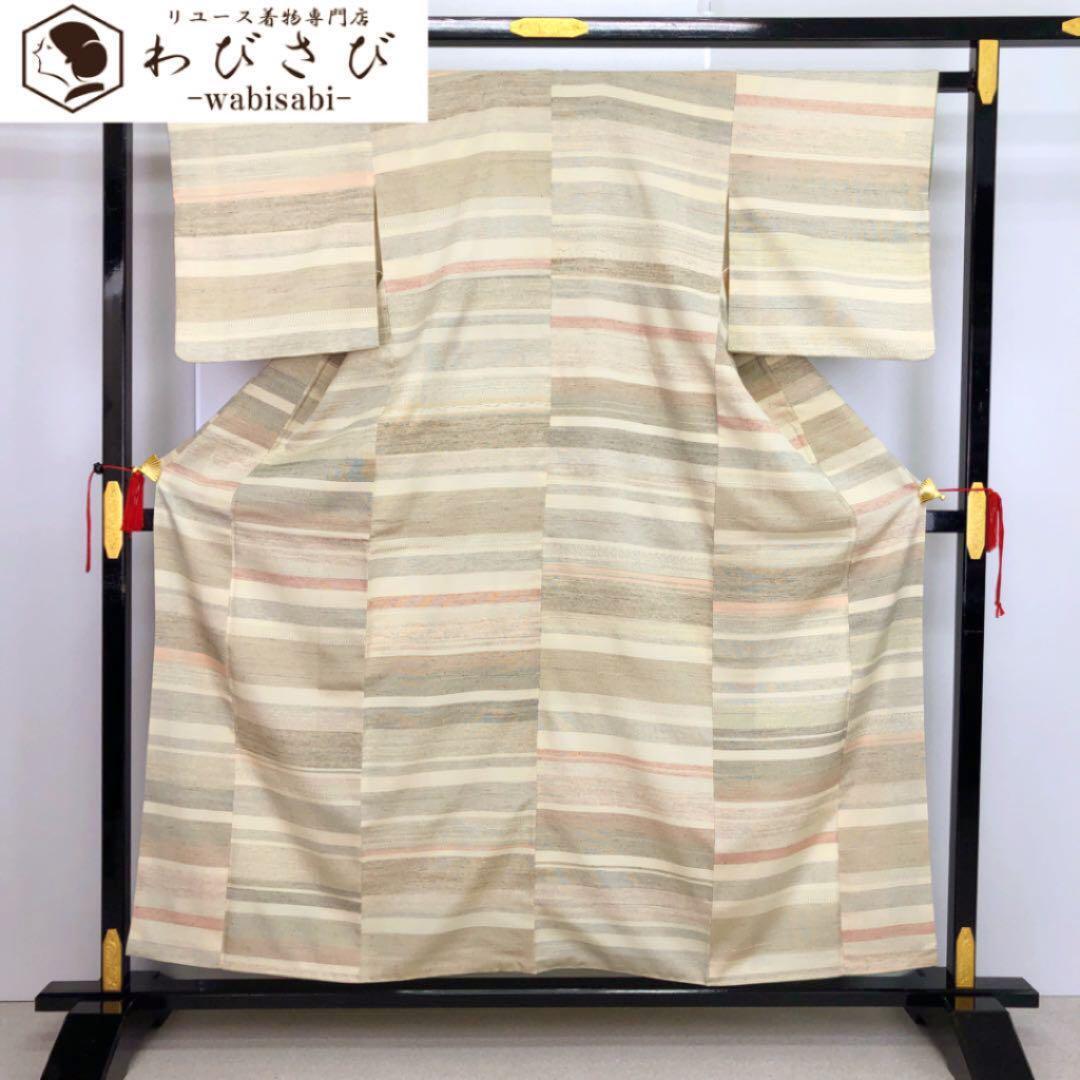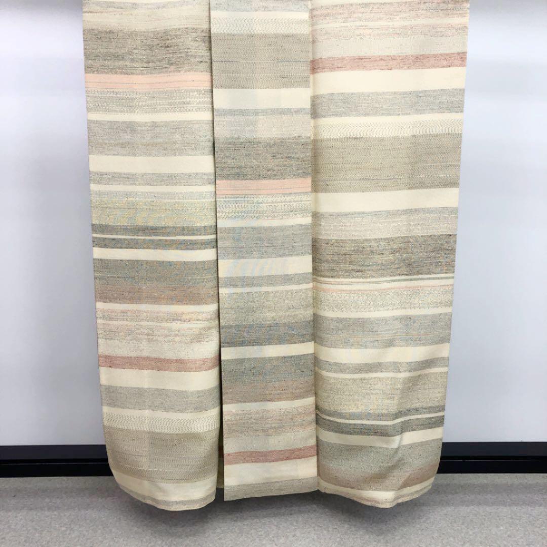 本場塩沢紬 やまだ織 横縞模様 証紙付 ガード加工 K-2317