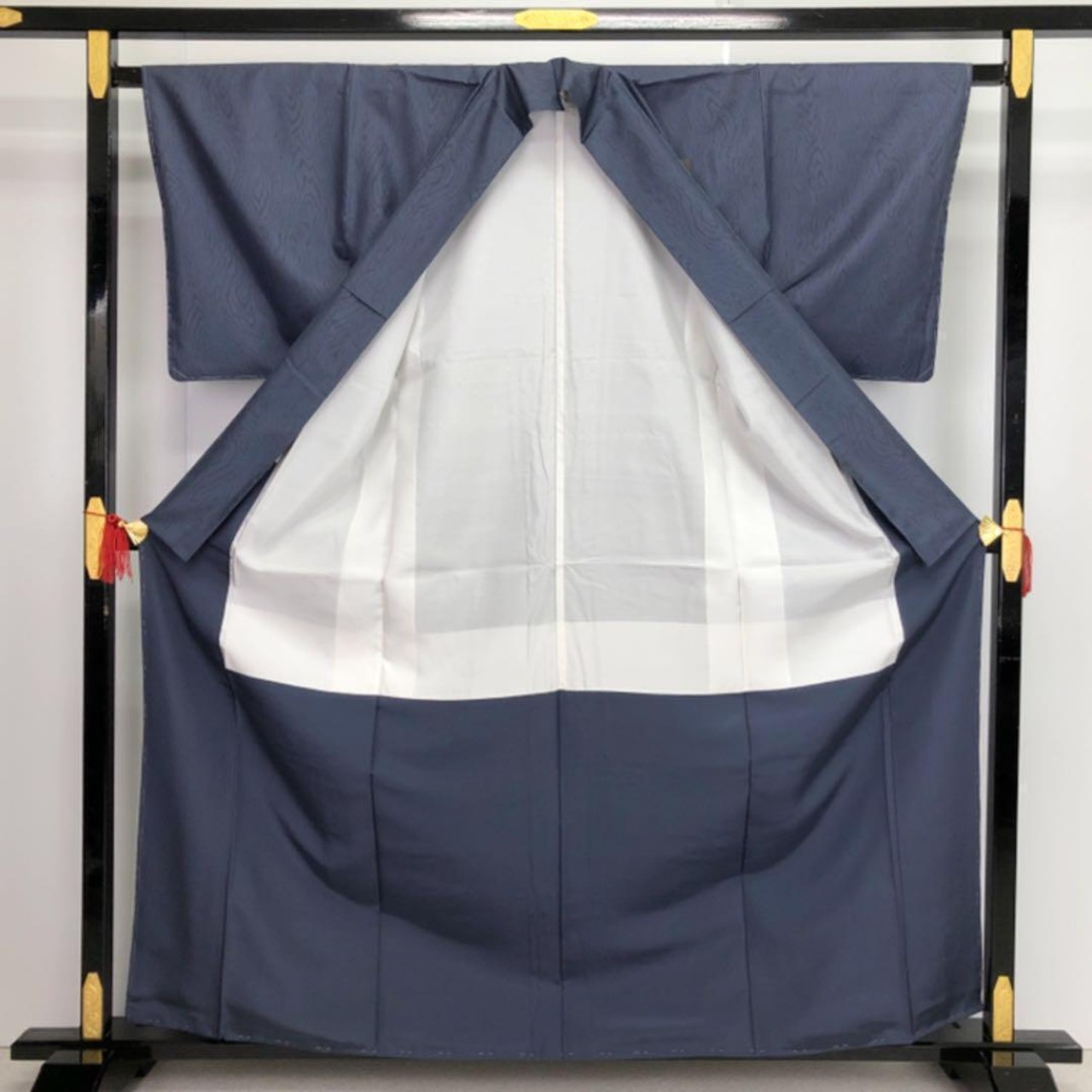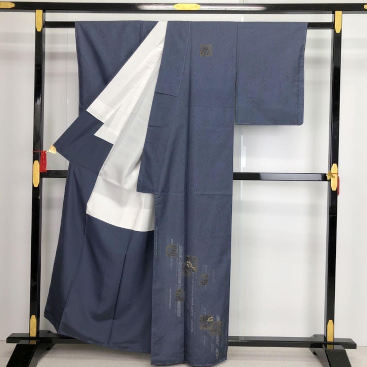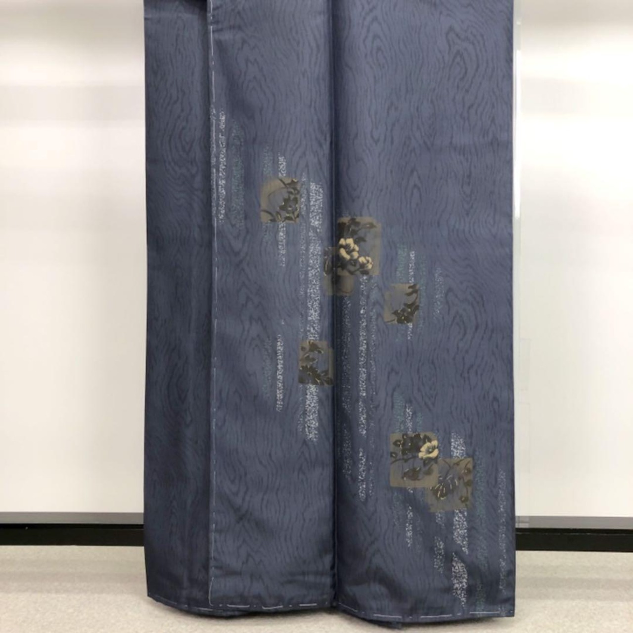 本場大島紬 染大島 付下げ 木目地模様 四角に花柄 紺藍色 証紙付 K-2333