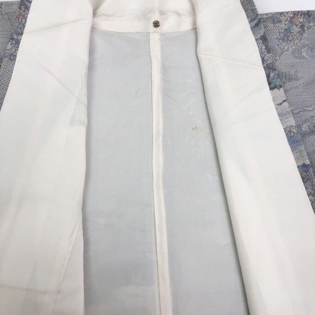 写真のように衿山、右前後袖、左後身頃裾付近にうっすら汚れと胴裏にうっすらやけとスナップ跡ございます。