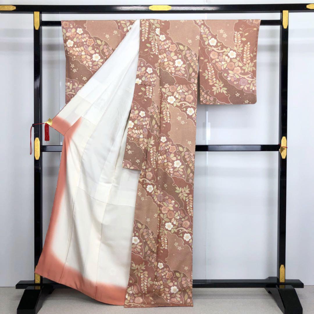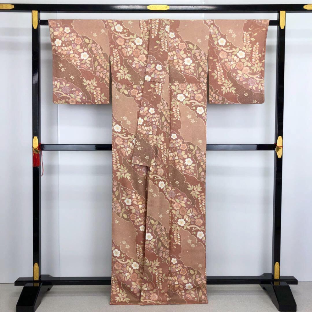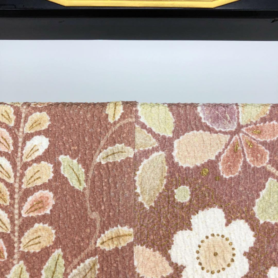斜めに流れるようにデザインされた絞り風の花柄模様が素敵なお品でございます。