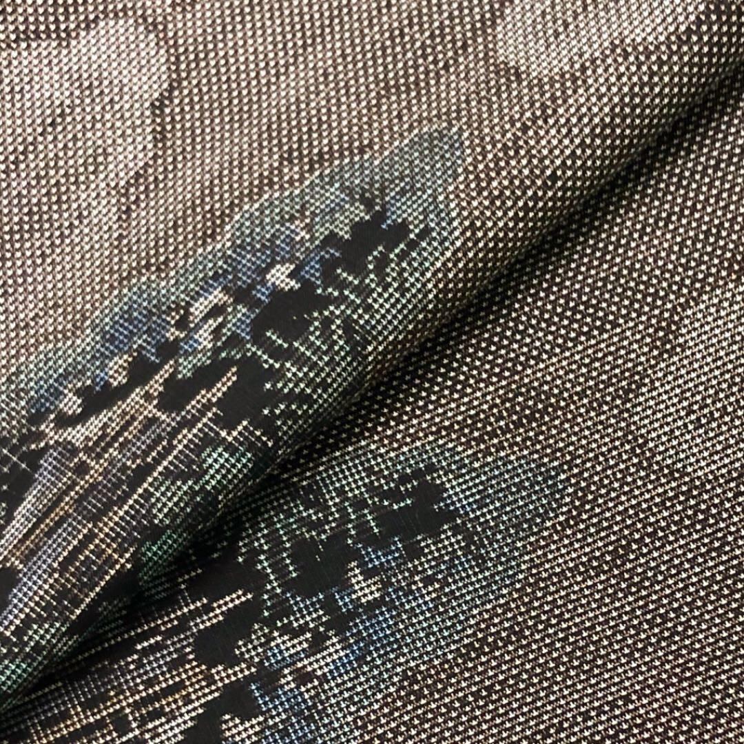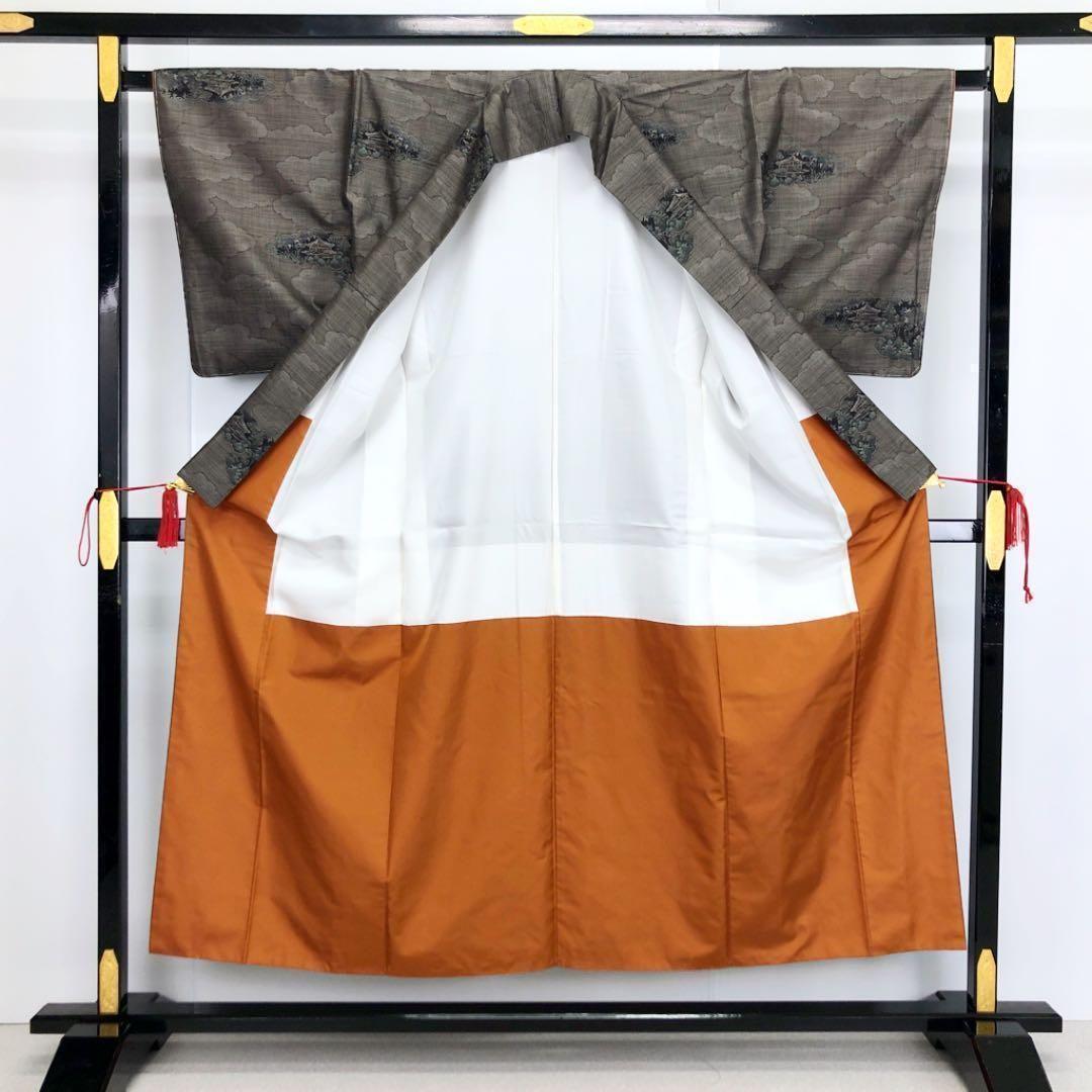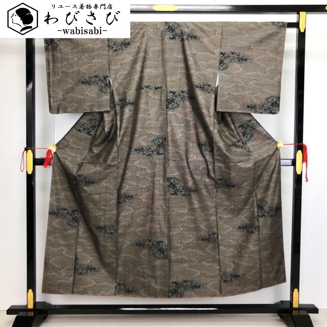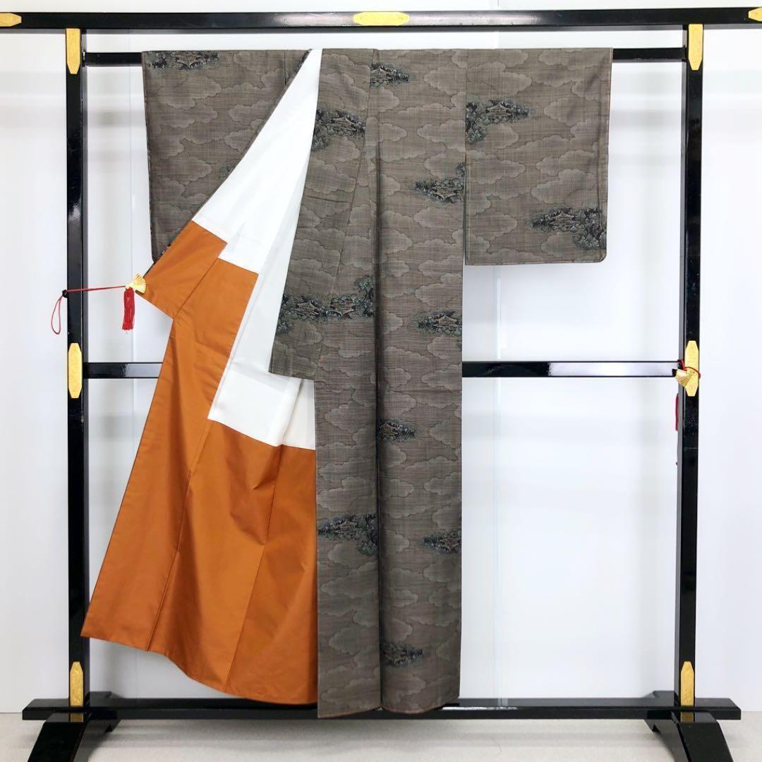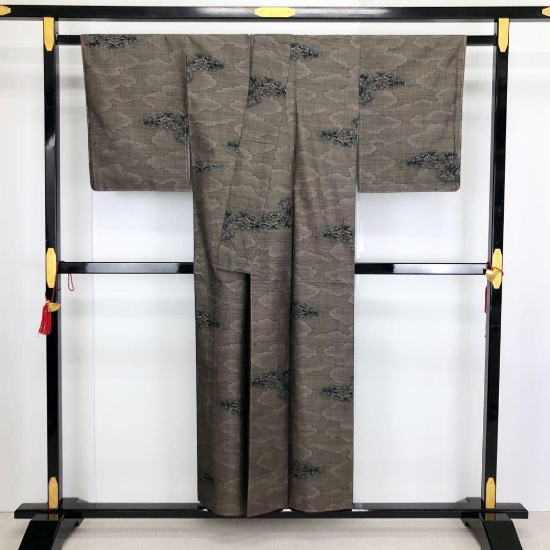 茶泥染の雲模様の中に寺院で織模様がデザインされた素敵なお品でございます。