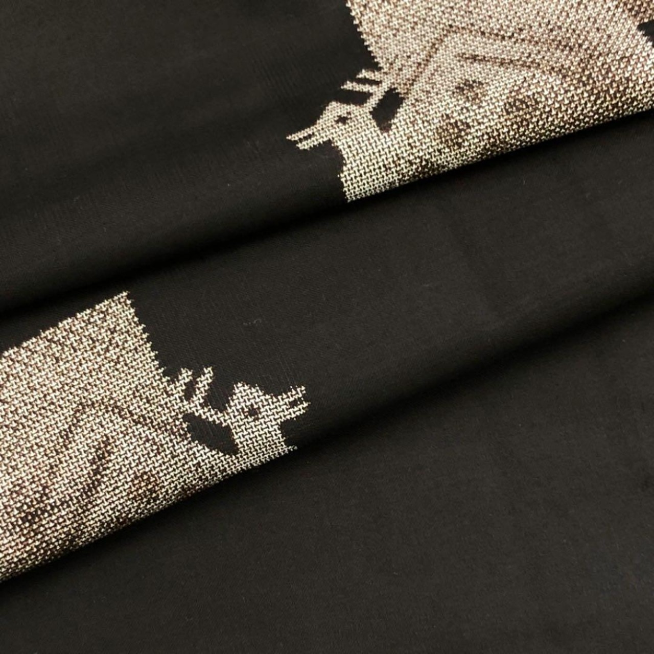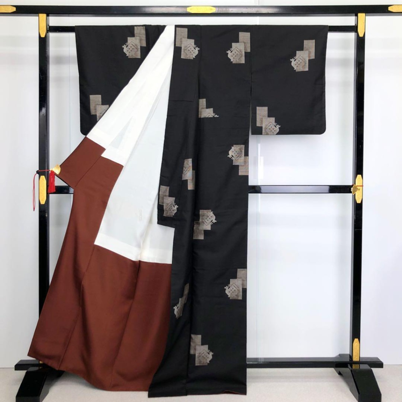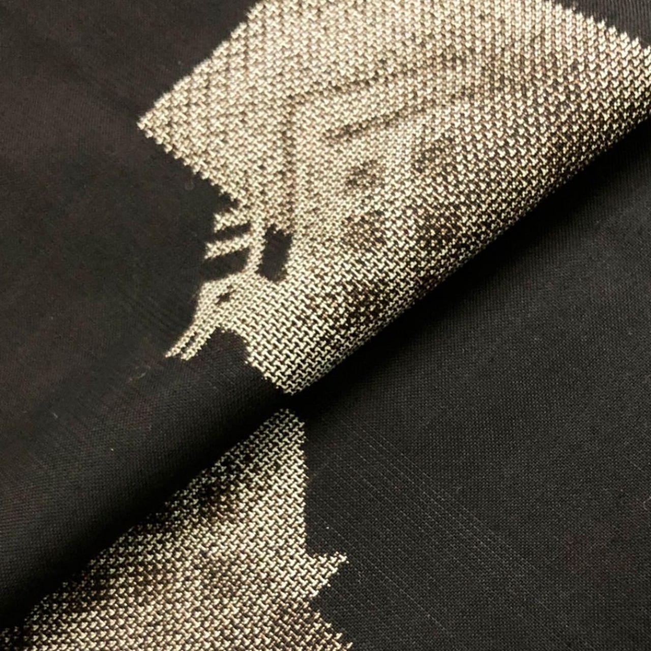 黒地の地空きに有栖川柄の織模様がデザインされた素敵なお品でございます。