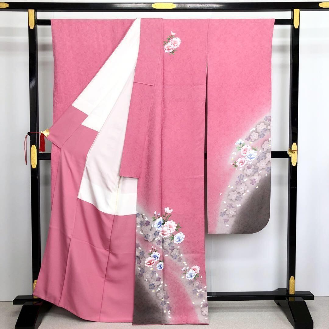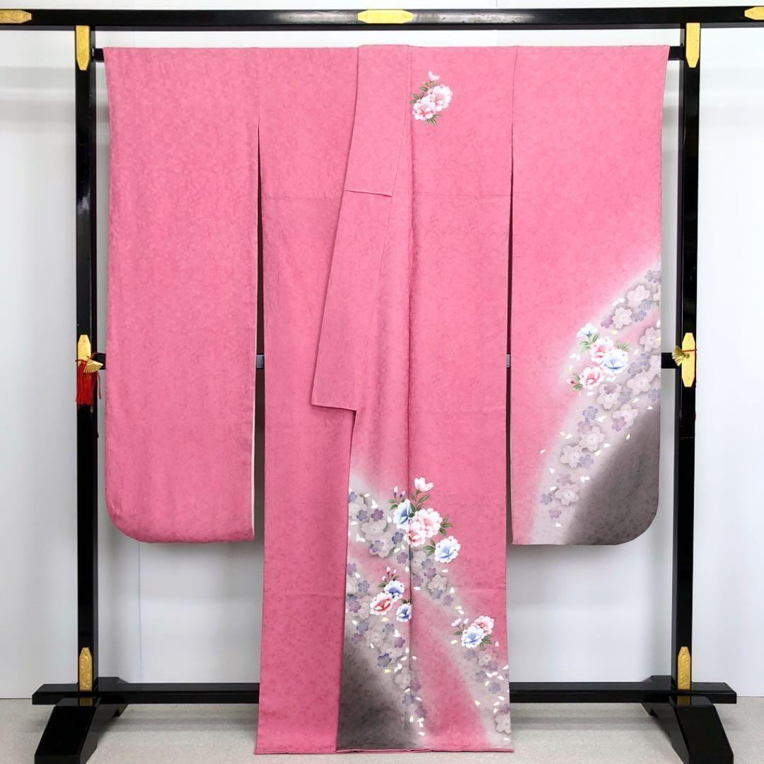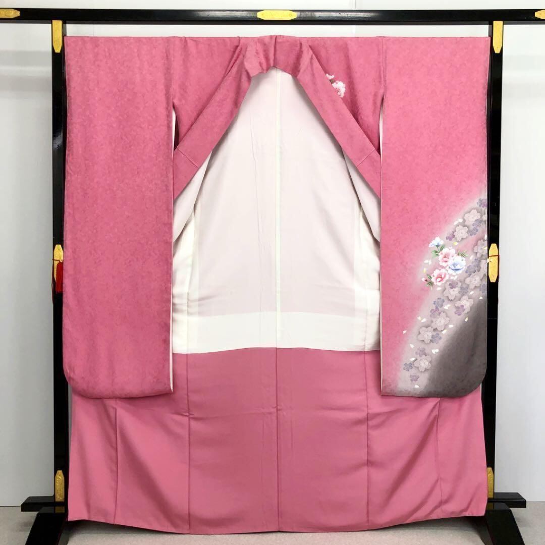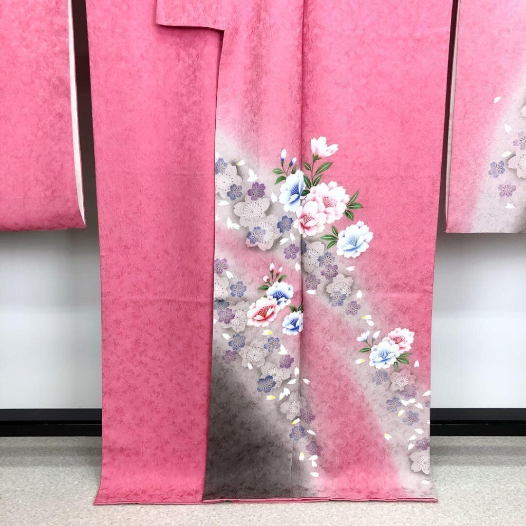 振袖 美しい桜の花 金彩 縮緬 槿花色 トールサイズ K-2499 着物 きもの kimono 和服 和装 中古 リサイクル着物 【送料無料】