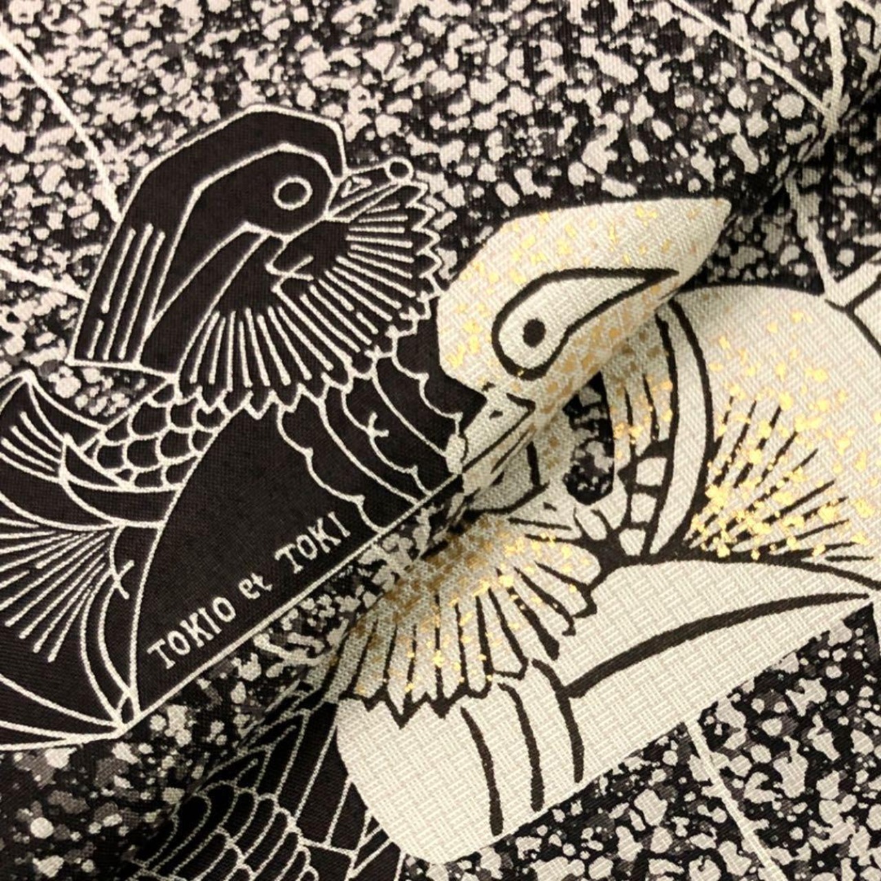 羽田工房で多くの手をかけられて作り上げられた染大島に鴛鴦に金彩、豪華に美しくデザインされた至極の逸品でございます。