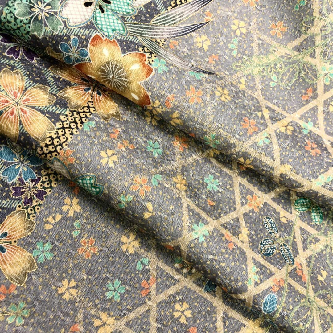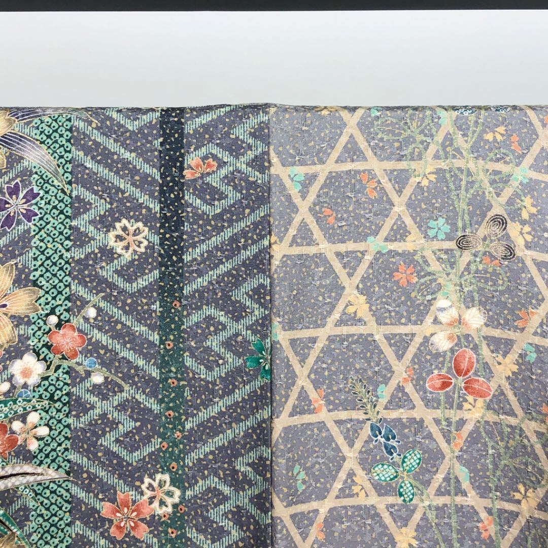 籠目模様、沙綾形紋様に桜の花、金彩で鮮やかにデザインされた素敵なお品でございます。