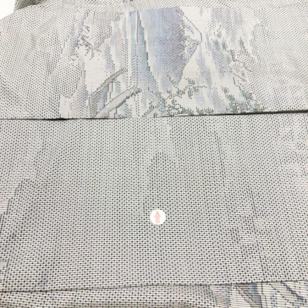 上品な白色に美しい山の風景柄の織りが素敵なお品でございます。