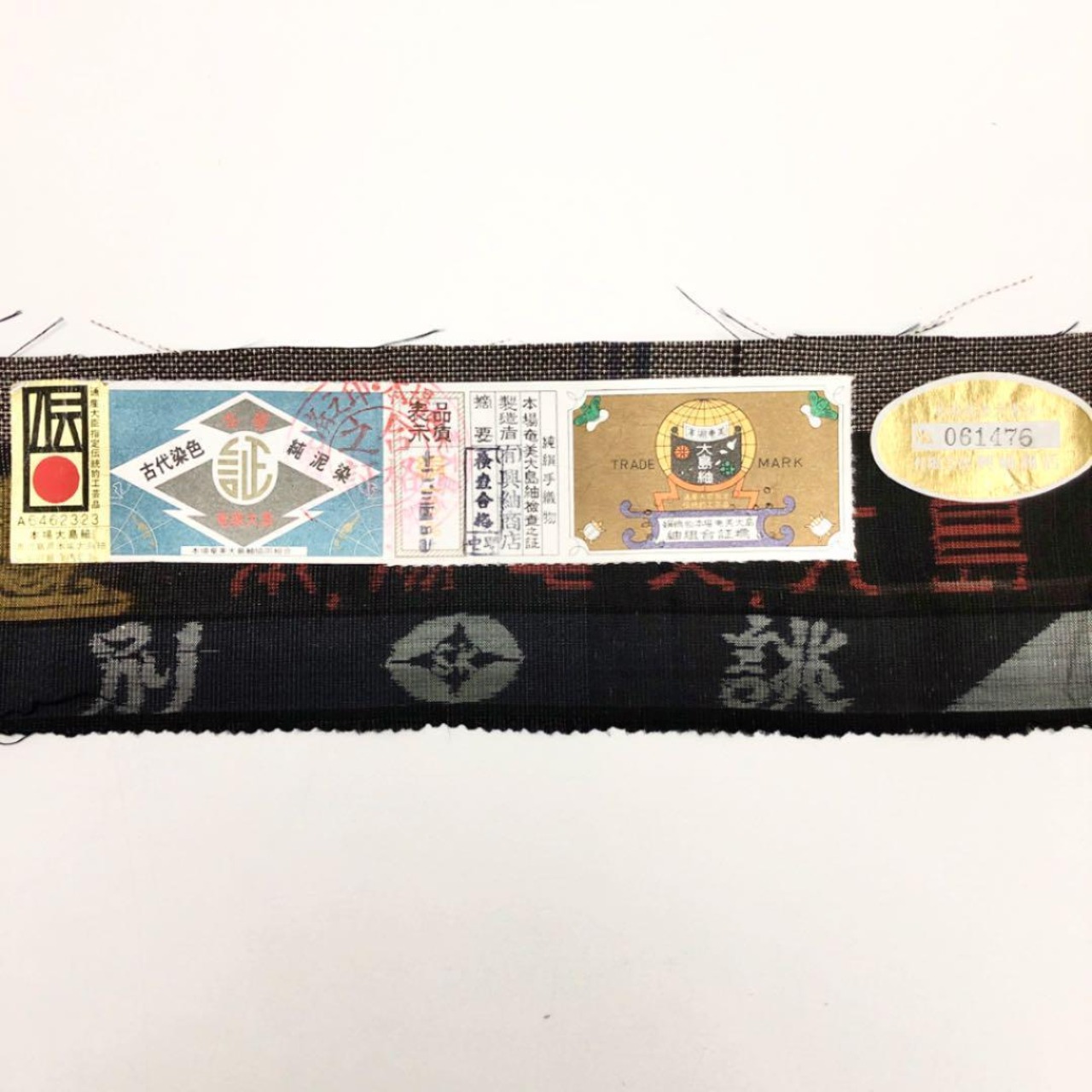本場奄美大島紬 カタス7マルキ 茶泥染 証紙付 幾何学模様 K-2676