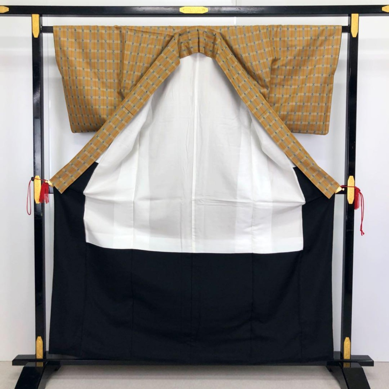 米沢紬 花織 素敵な格子柄 木蘭色 K-2732