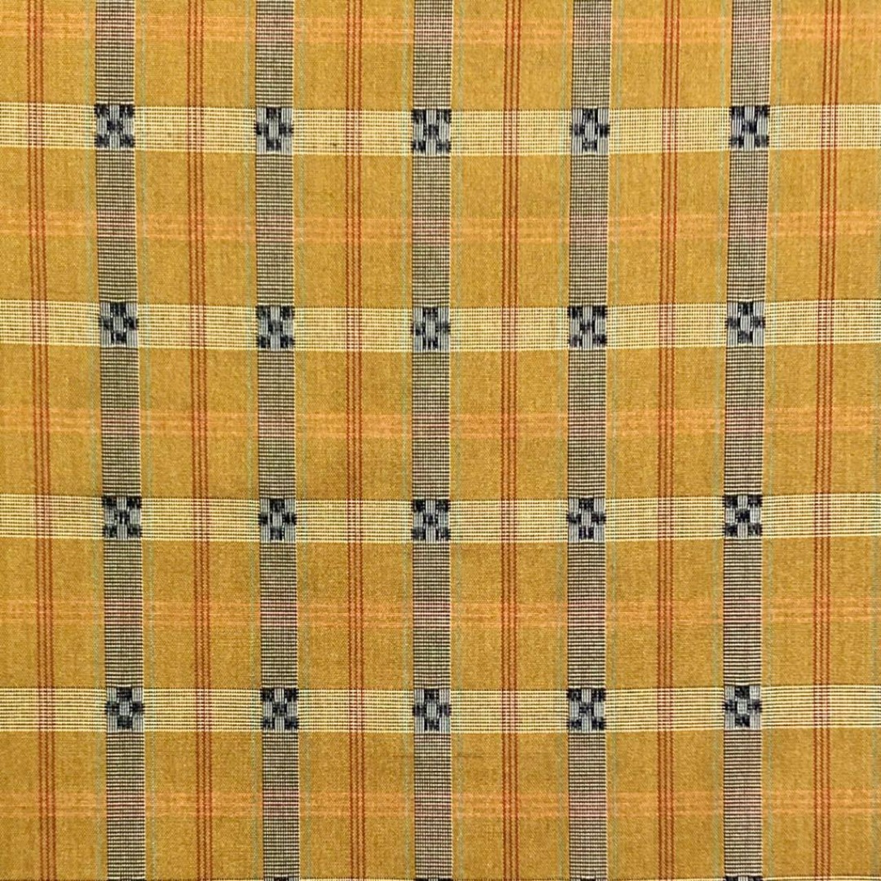 木蘭色の落ち着いたお色味に格子柄、花織でデザインされた素敵なお品でございます。