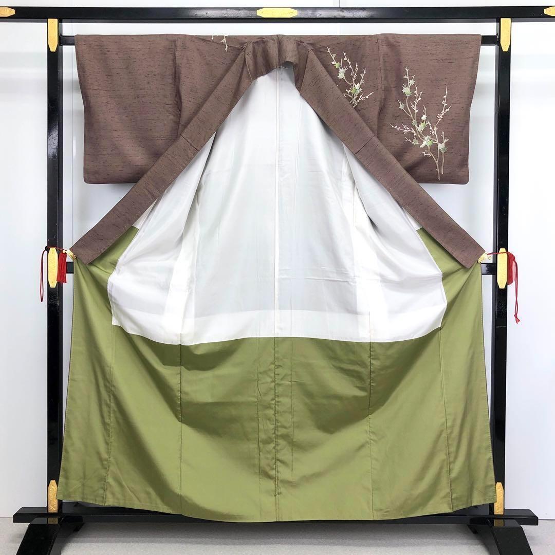 ?鼠色の紬地に枝花模様がデザインされた素敵なお品でございます。