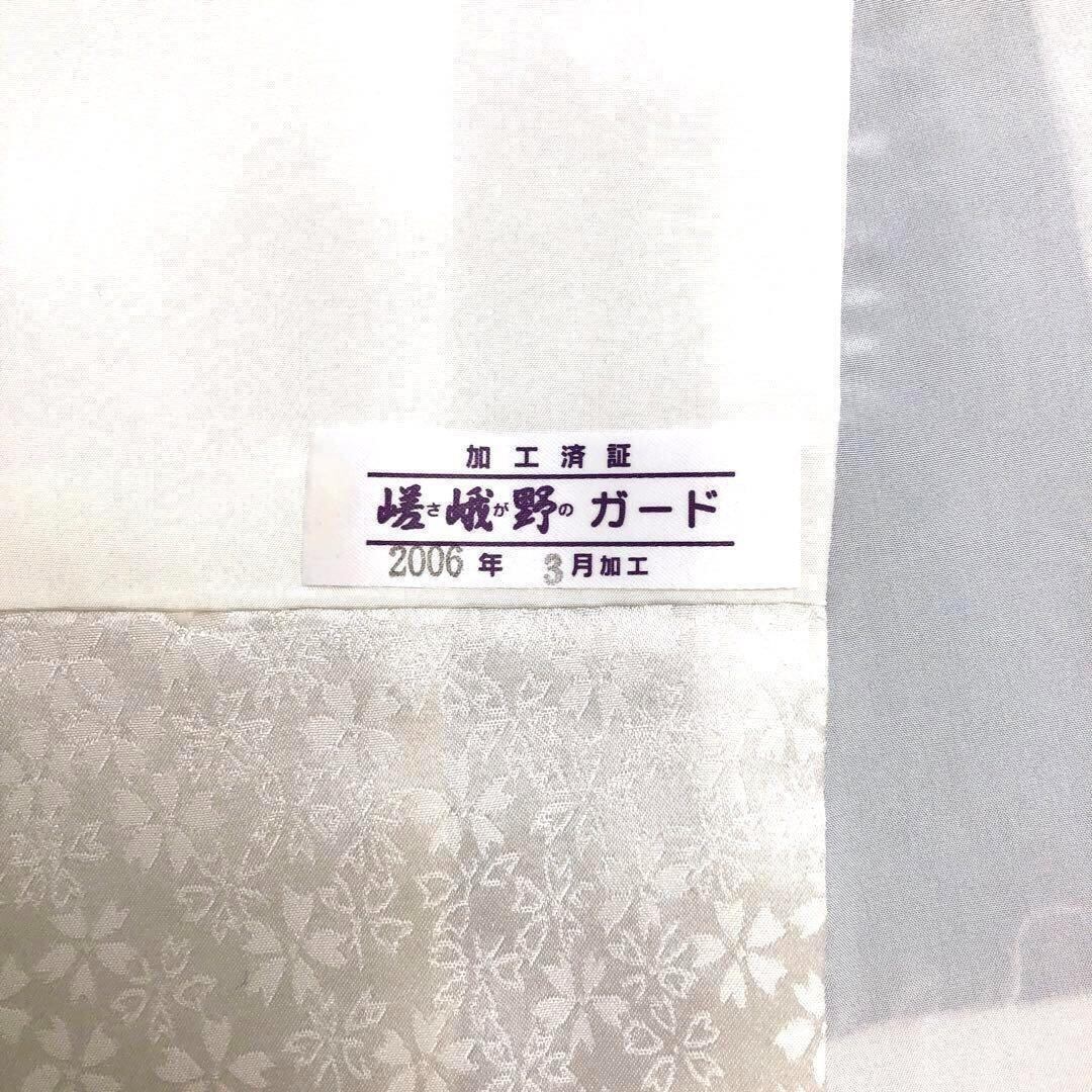 孔雀青色に銀通し、流れるような美しい花々、刺繍などでデザインされた豪華なお品でございます。
