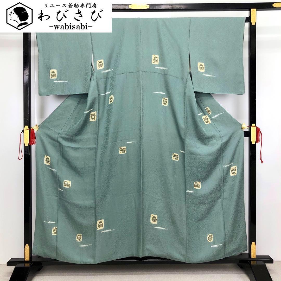 山藍摺色の上品なお色味の丹後ちりめんに飛び柄で絞りのフクロウ柄がデザインされた素敵なお品でございます。