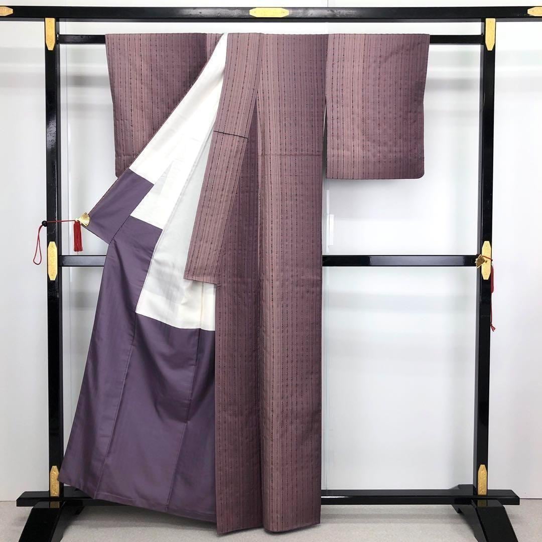 紬着物 七代目吉澤与市 伝統工芸 縦縞模様 グラデーション K-2841 着物 きもの kimono 和服 和装 中古 リサイクル着物 【送料無料】