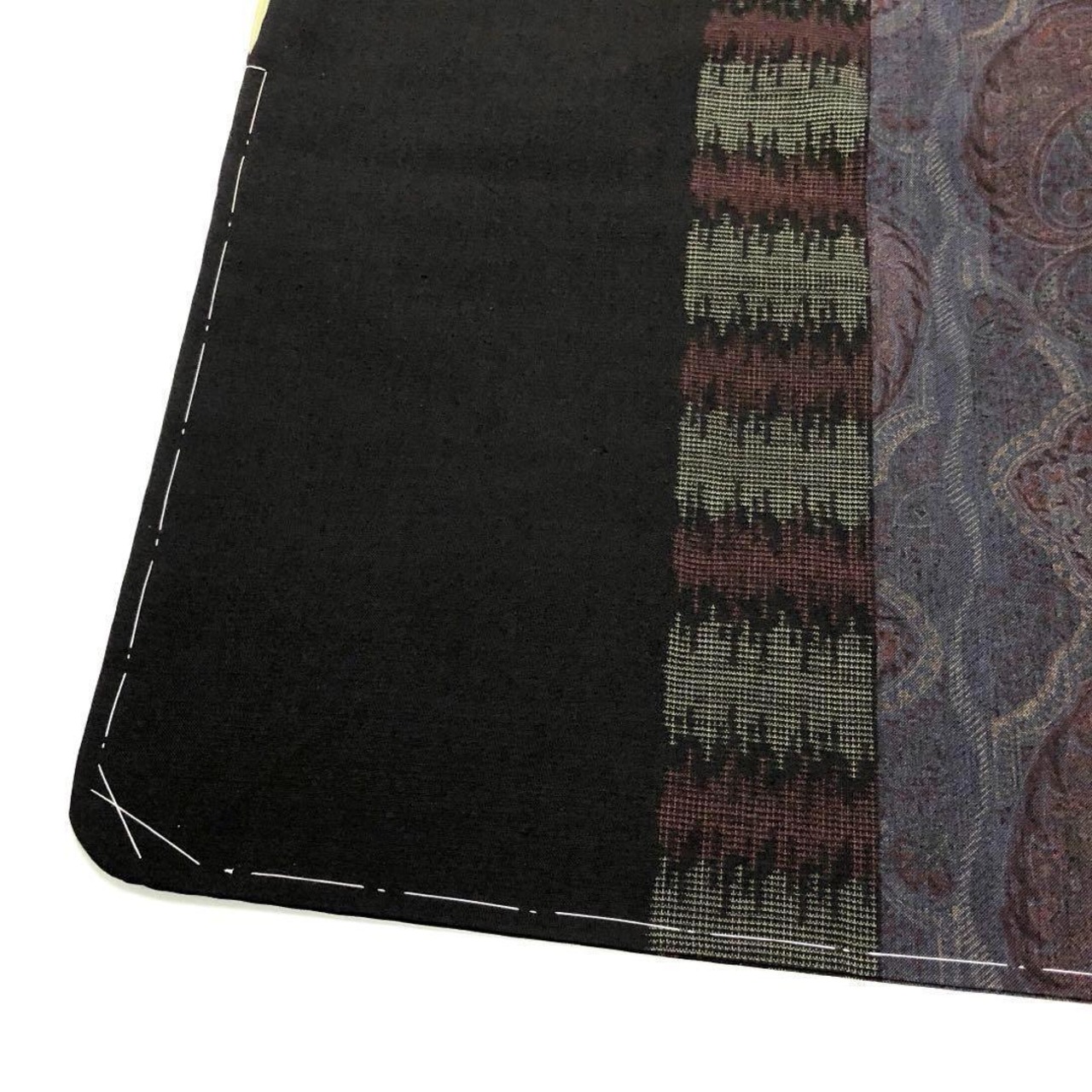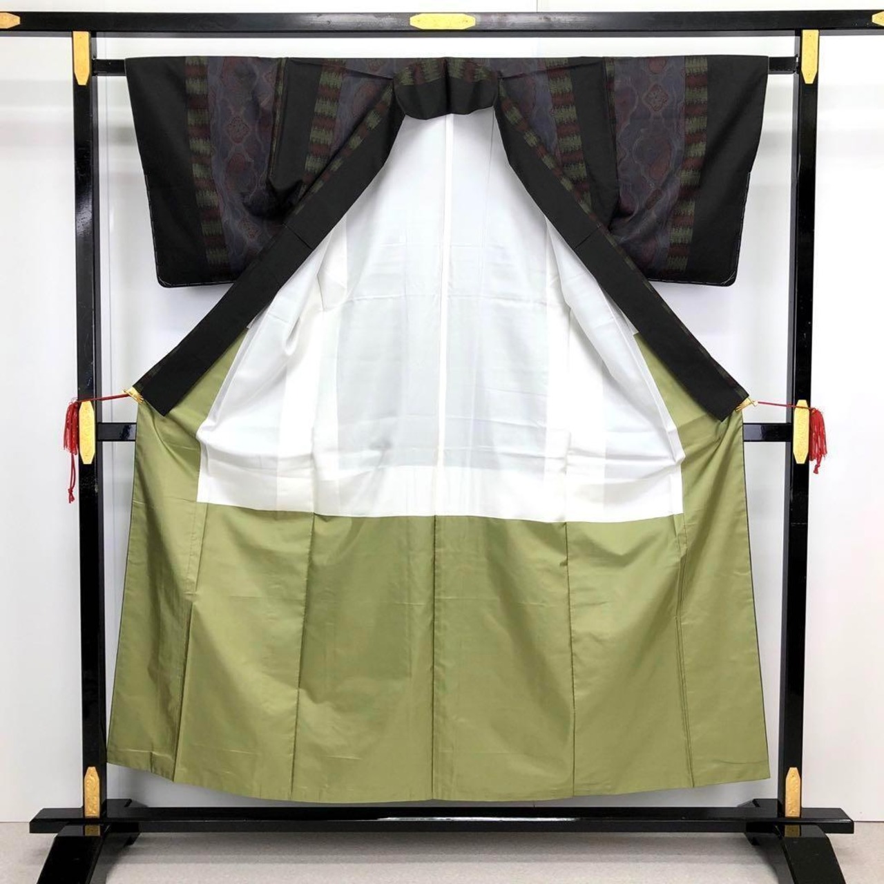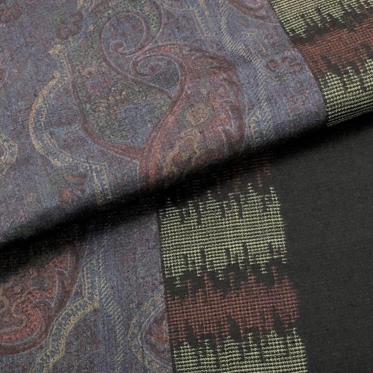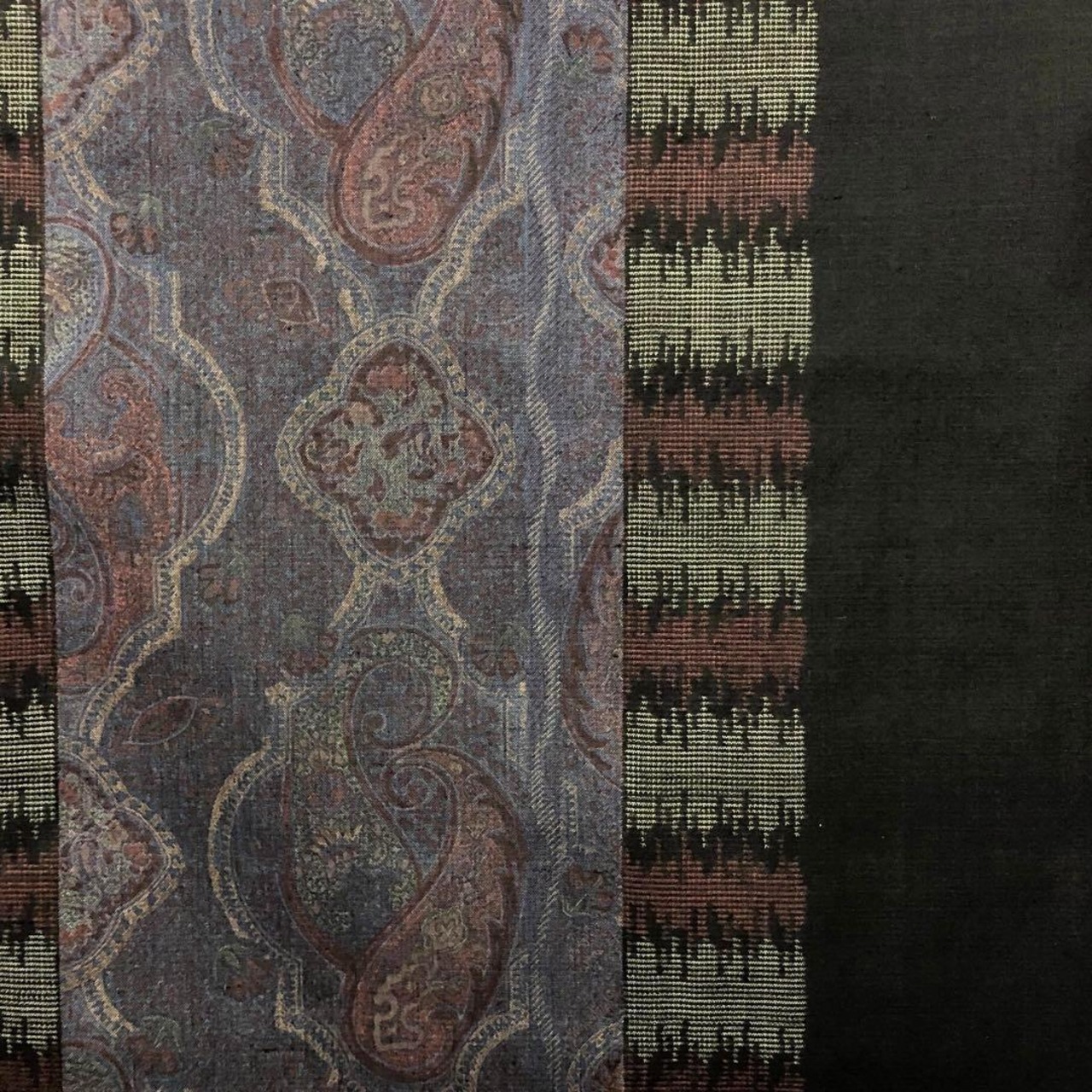 黒地に縦柄のペイズリー模様がデザインされた美しい柄裄のお品でございます。