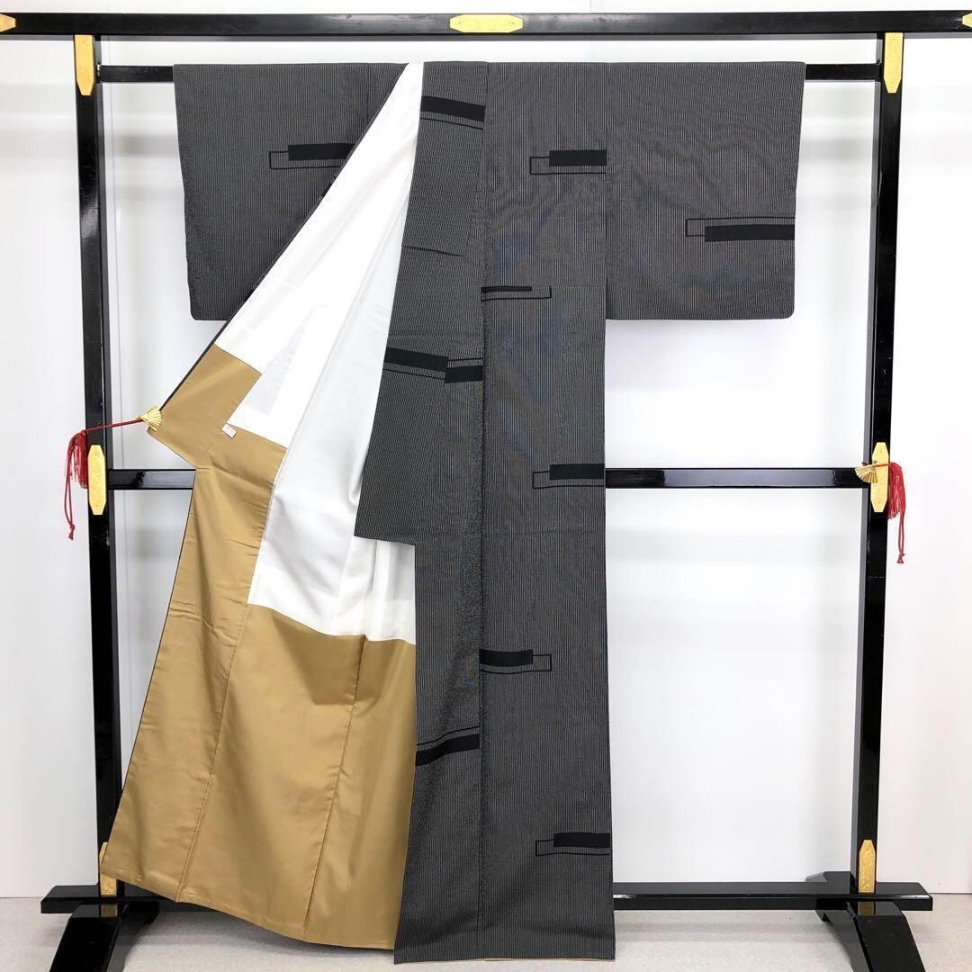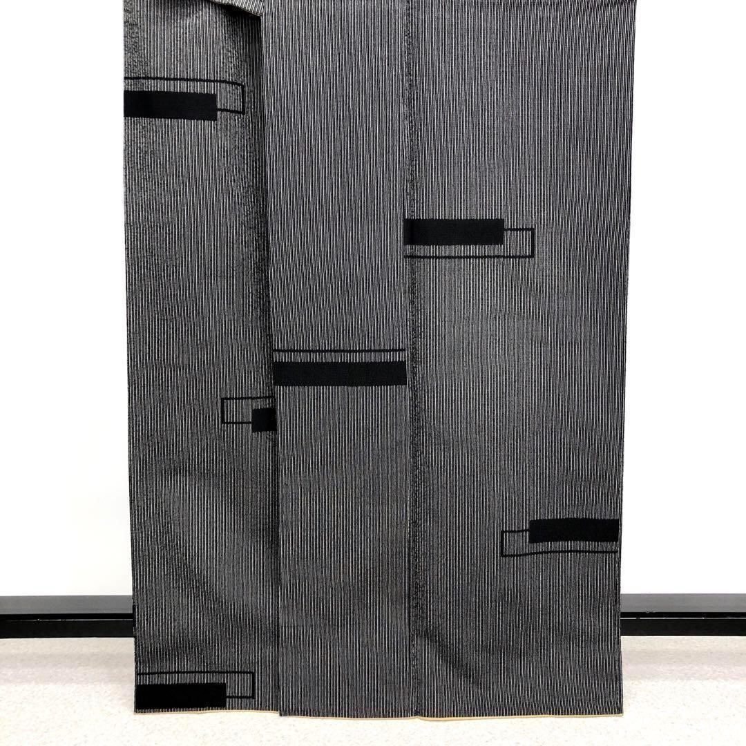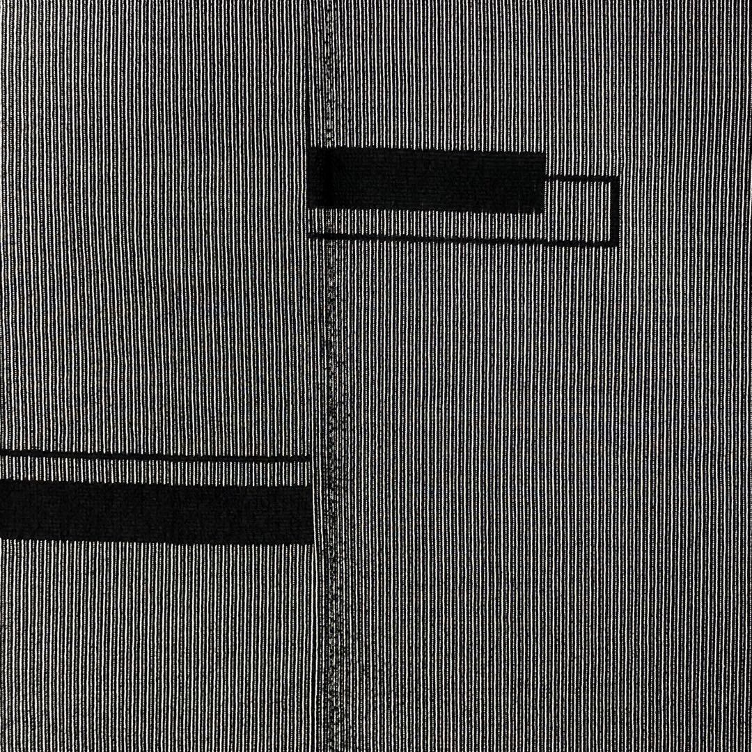 モノトーンの落ち着いたお色味、縦縞模様に四角柄がデザインされた素敵なお品でございます。