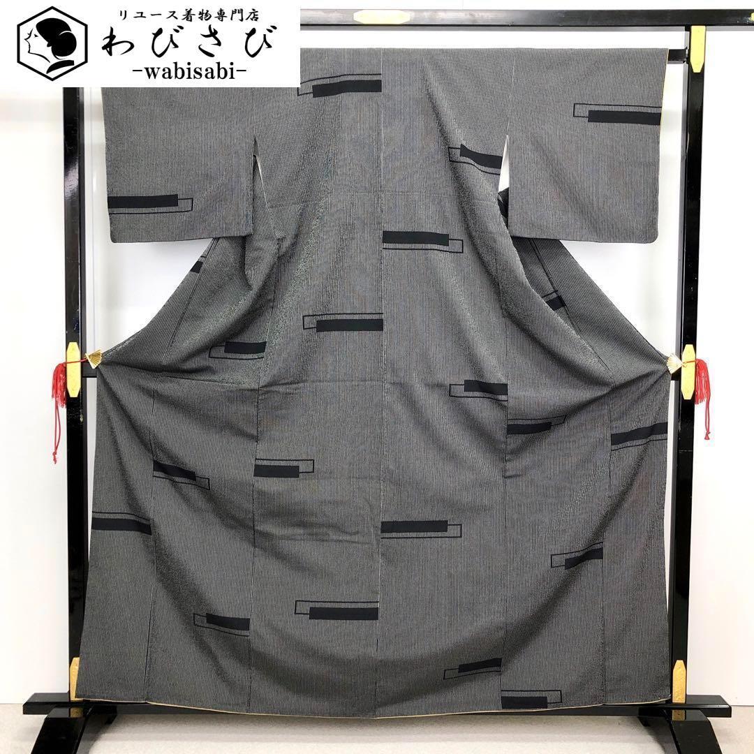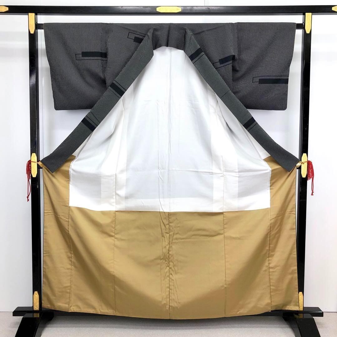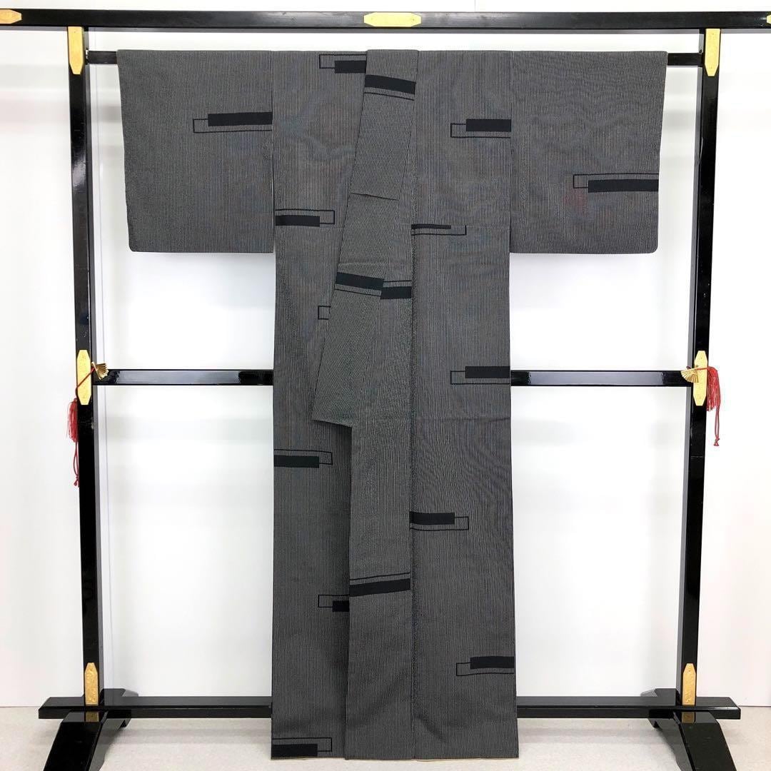 モノトーンの落ち着いたお色味、縦縞模様に四角柄がデザインされた素敵なお品でございます。