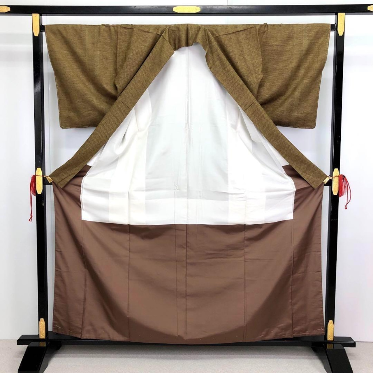 紬着物 亀甲紬 脂燭色 残布付 しつけ糸 K-2895