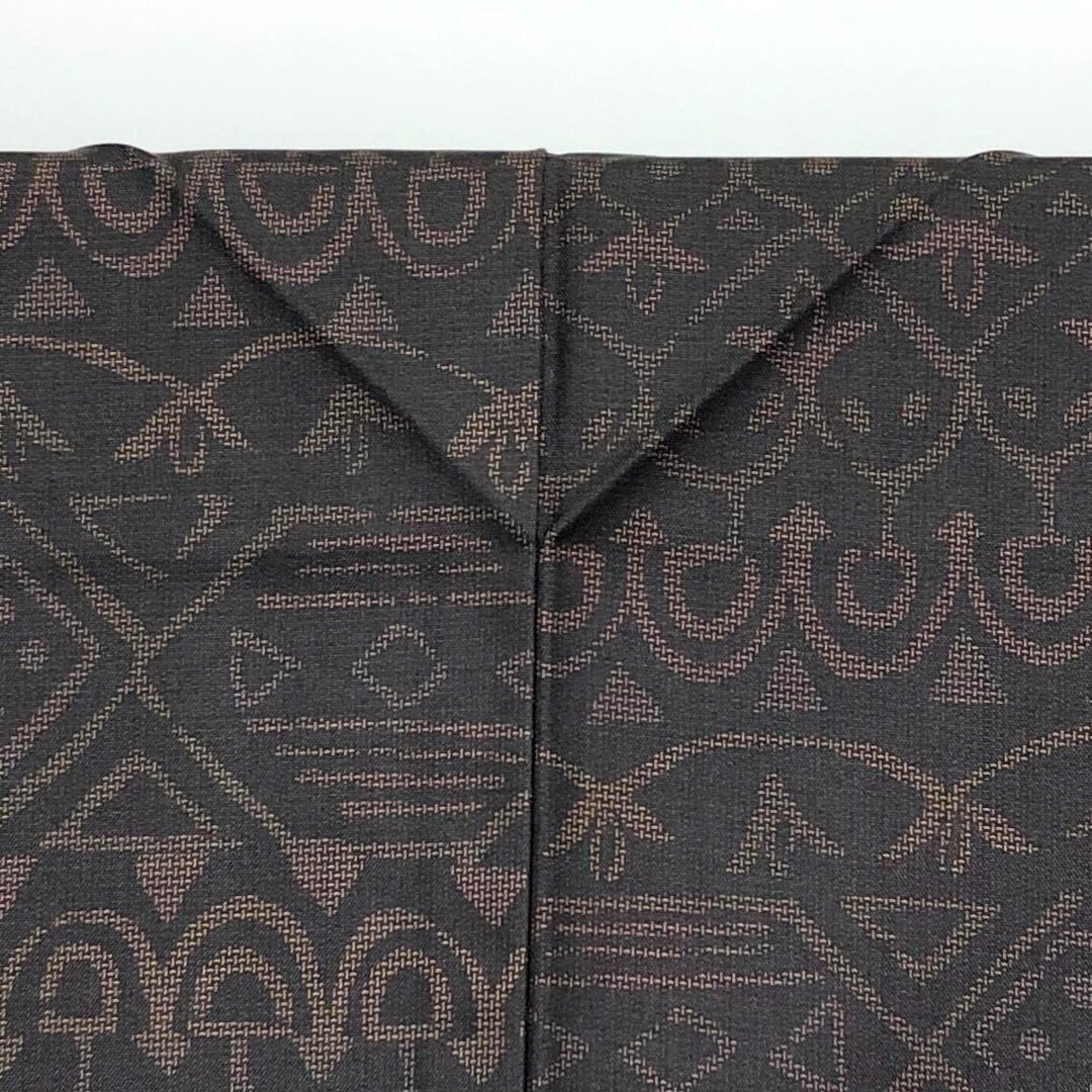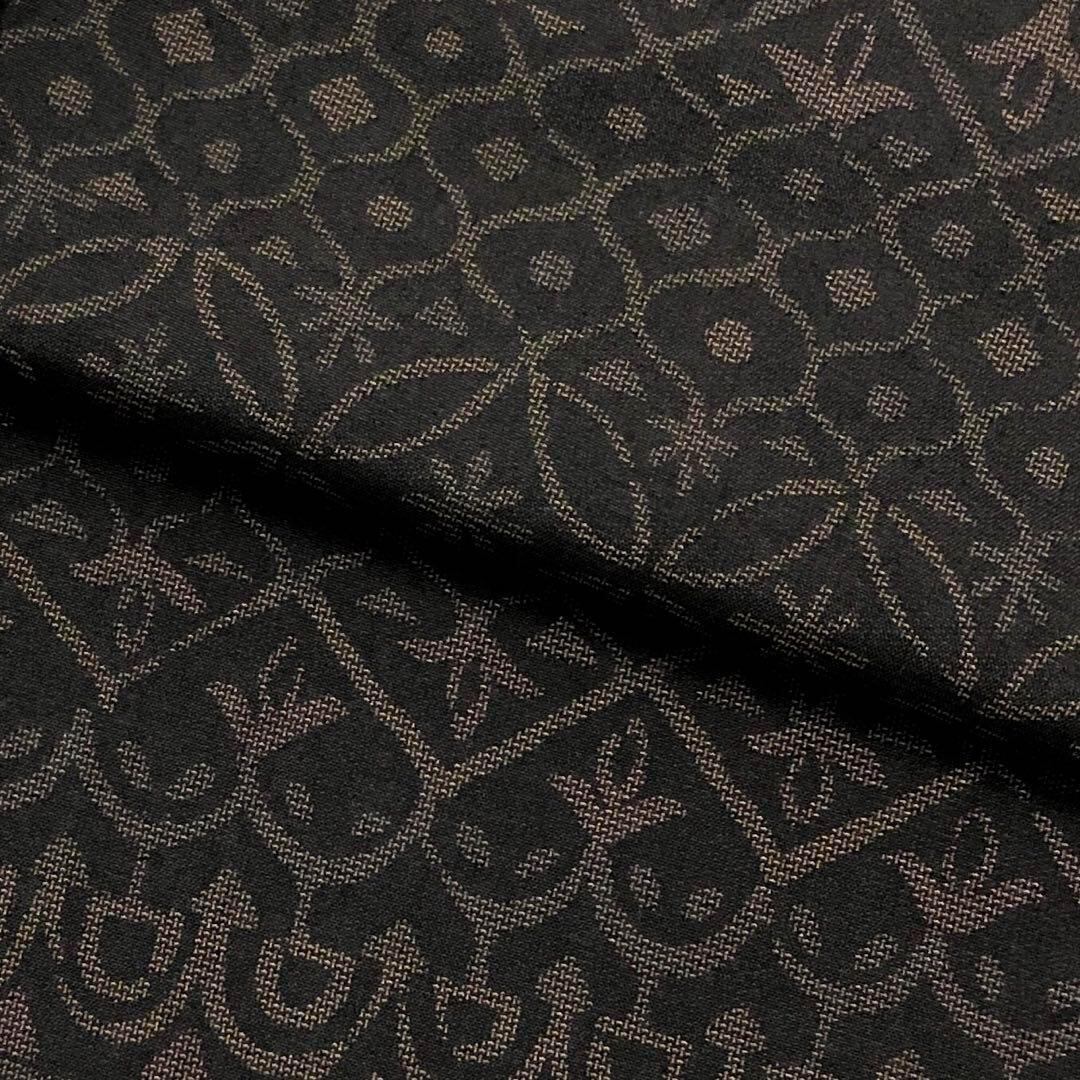 泥染の風合いの良い黒色に抽象模様がデザインされた素敵な柄行のお品でございます。