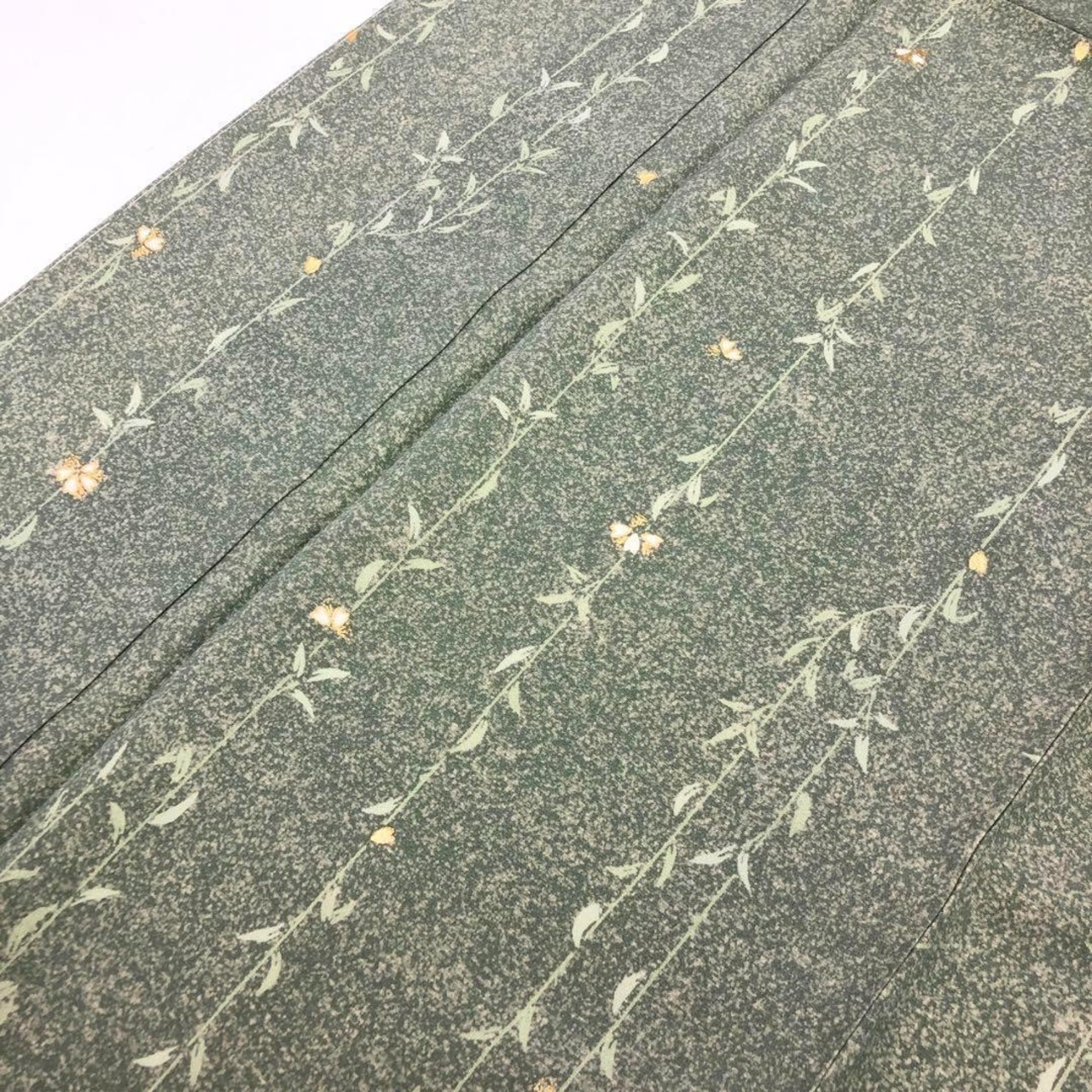 小紋 枝葉に花模様 金彩 叩き染 灰緑色 しつけ糸 K-2946