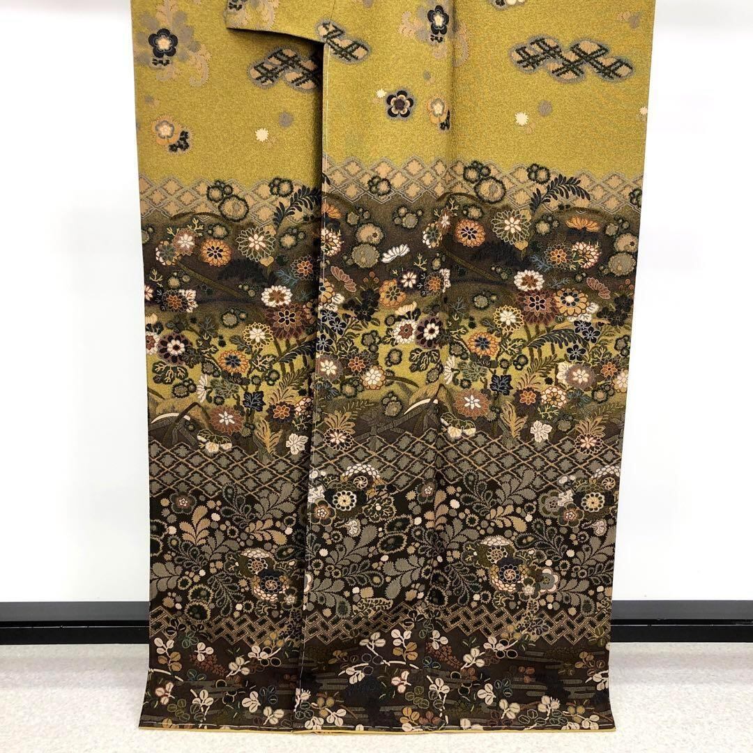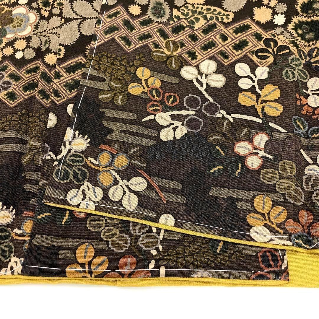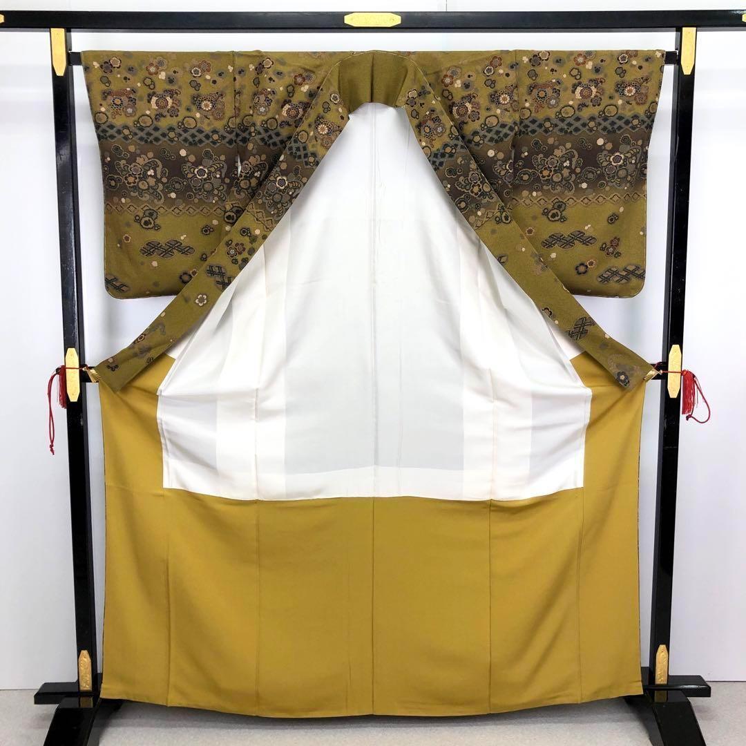 路考茶色ベースの美しいグラデーション、花柄模様がデザインされた柄裄の素晴らしいお品でございます。