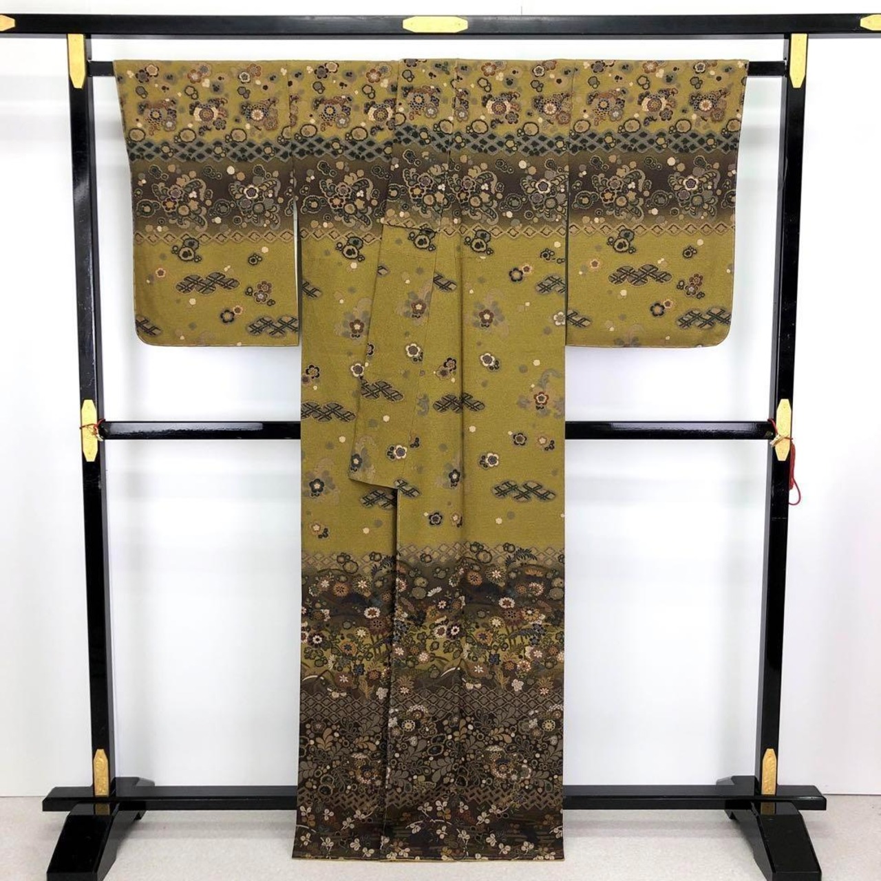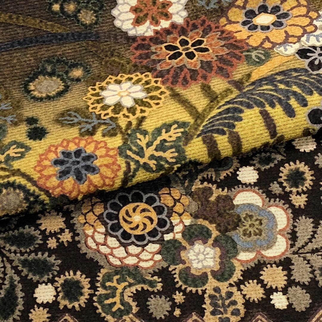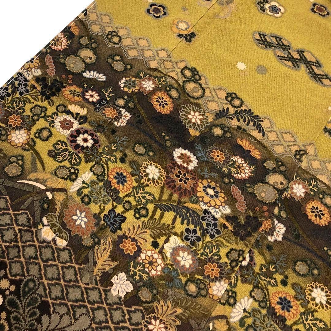 路考茶色ベースの美しいグラデーション、花柄模様がデザインされた柄裄の素晴らしいお品でございます。