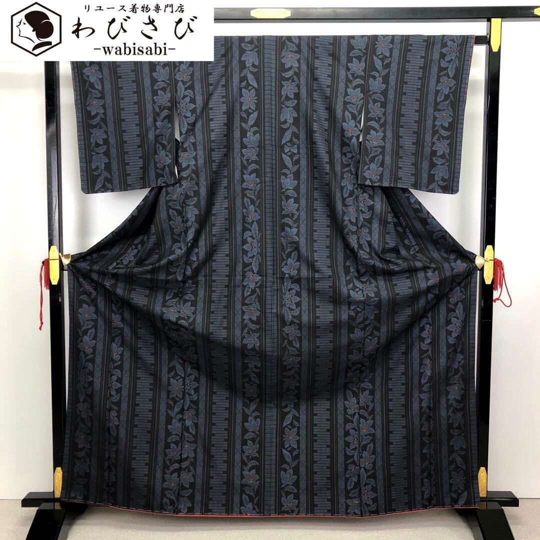 本場大島紬 一元7マルキ 縦柄花柄模様 藍泥染 K-2964