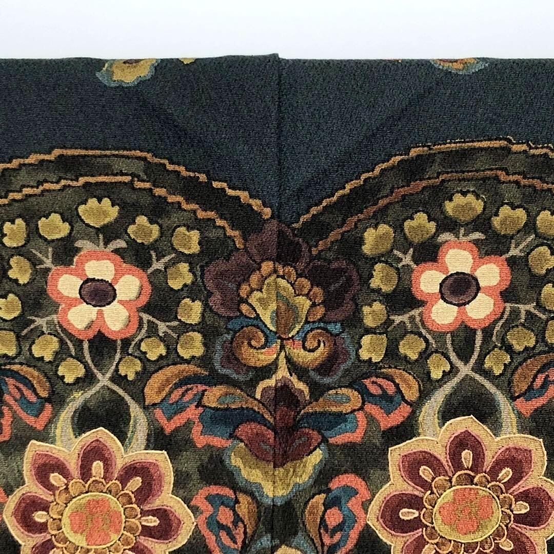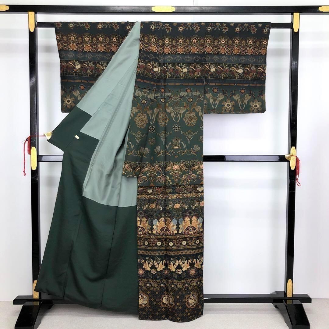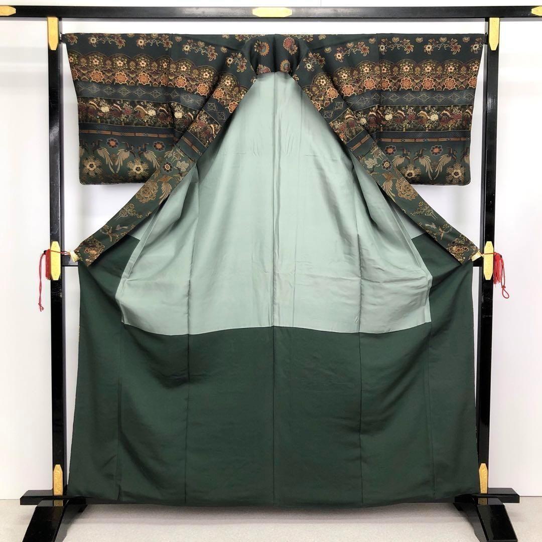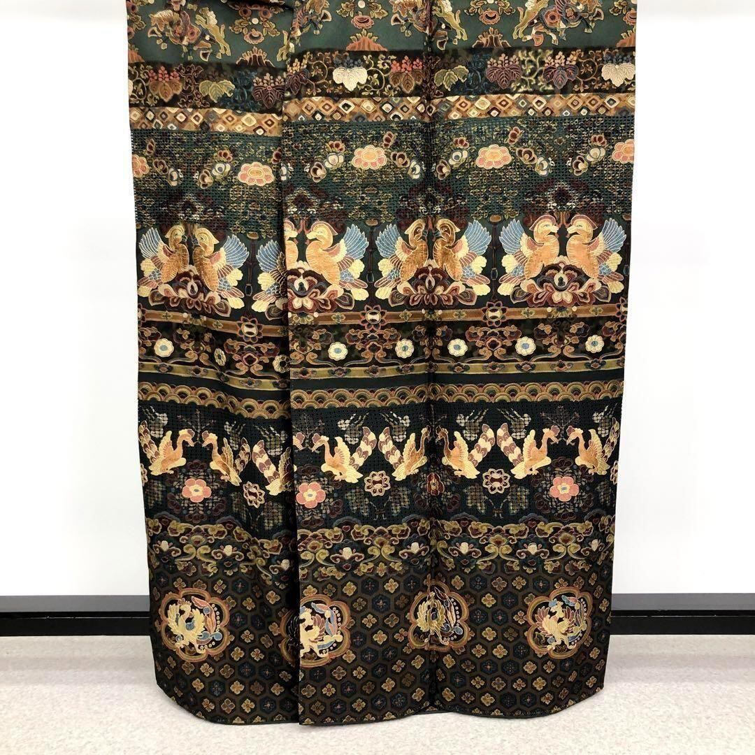 訪問着 極上総刺繍 オリエンタルな圧巻の花鳥模様 黒橡色 K-2969 着物 きもの kimono 和服 和装 中古 リサイクル着物 【送料無料】