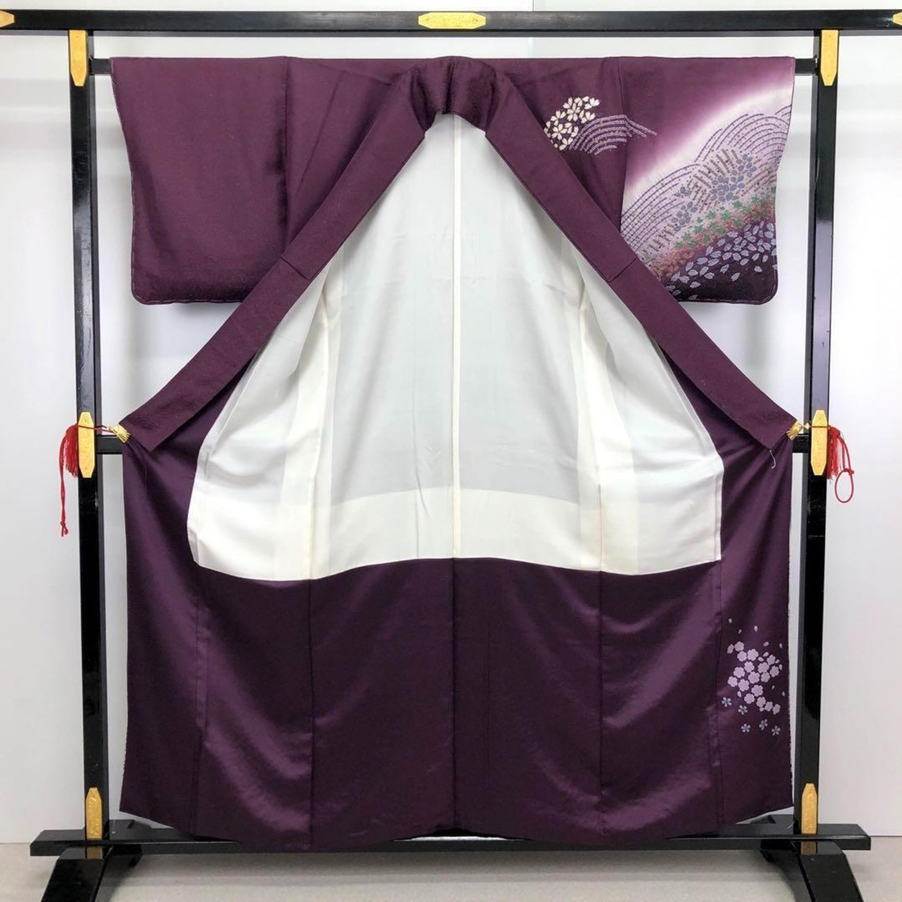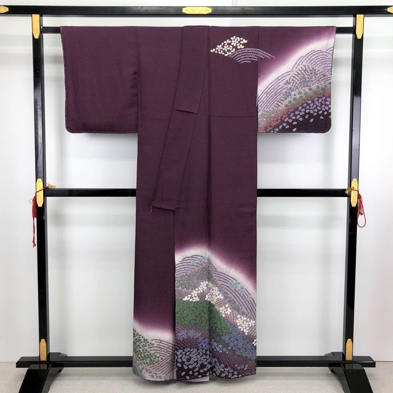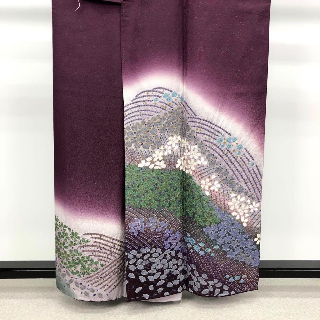 訪問着 作家物 美しい絞り染花模様 金通し 小紫色 しつけ糸 K-2997