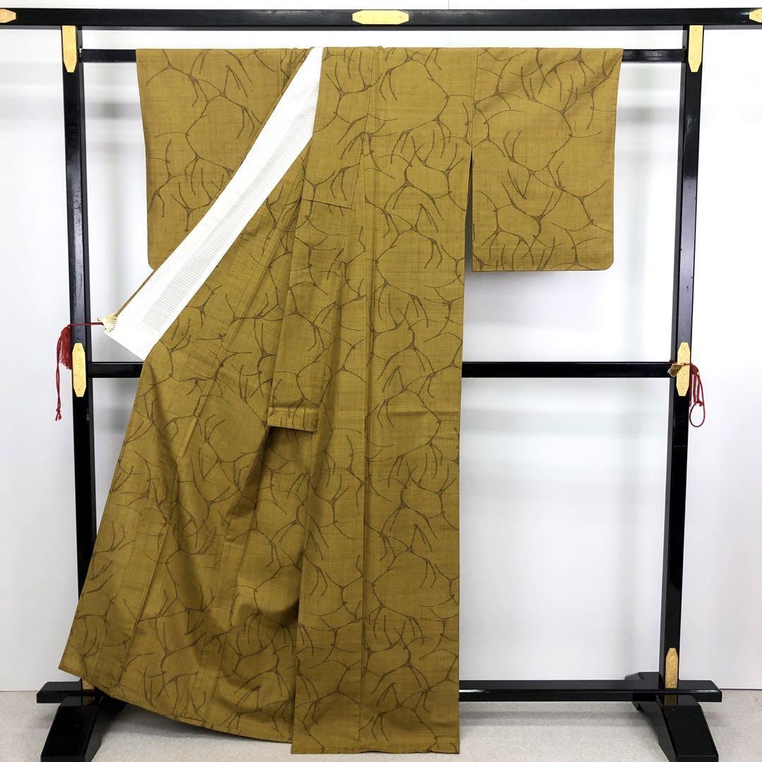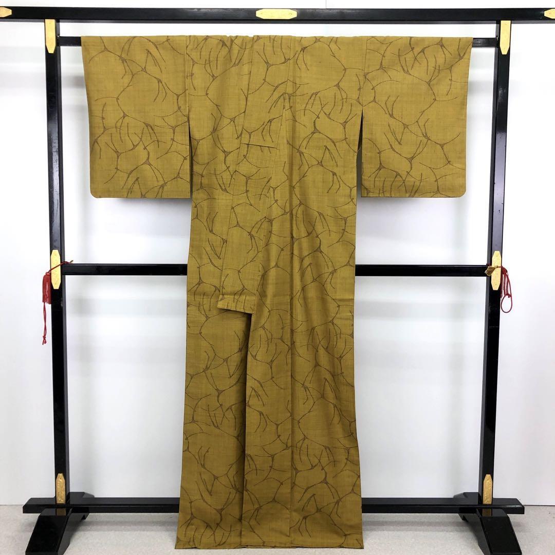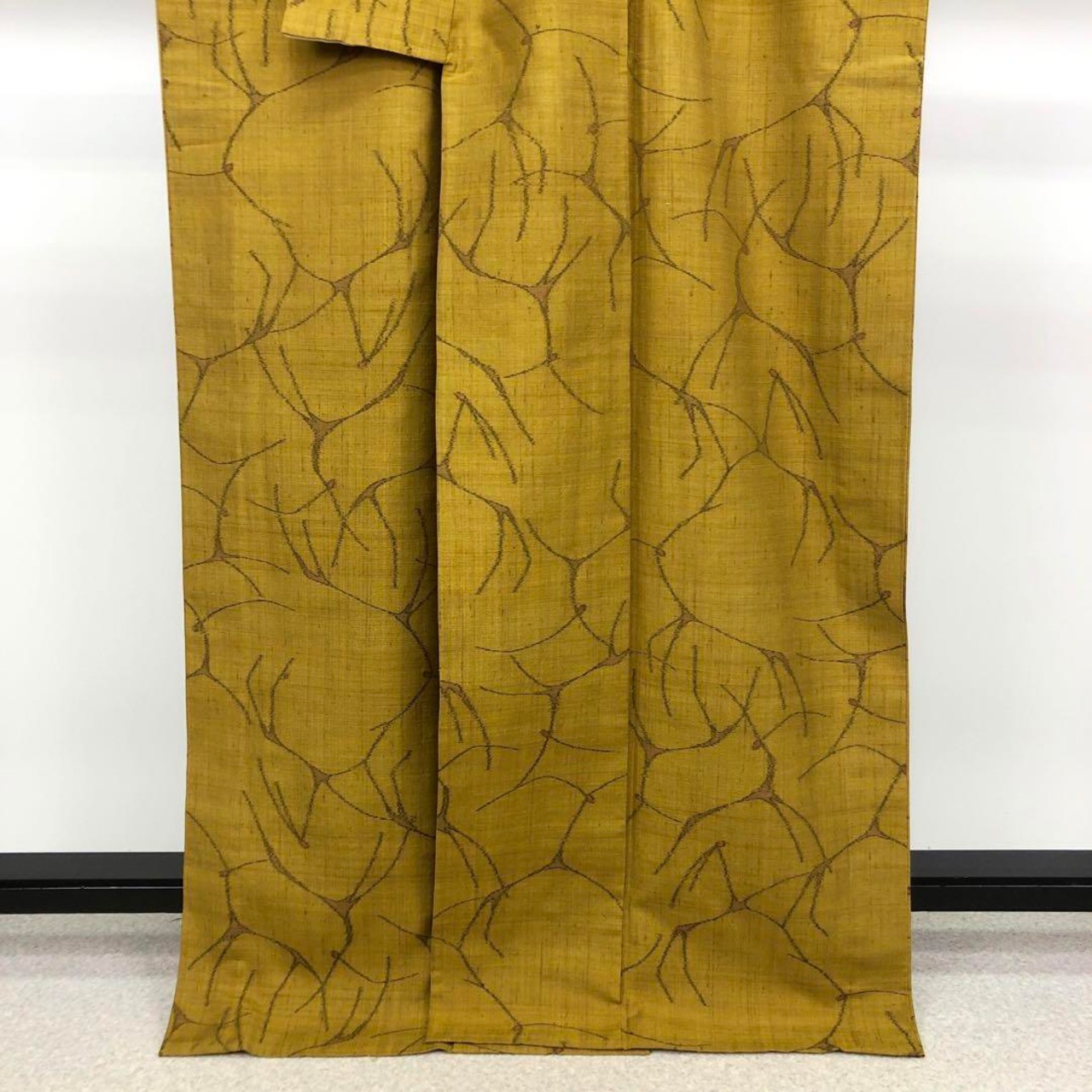 単衣 紬着物 抽象模様 黄橡色 K-3001