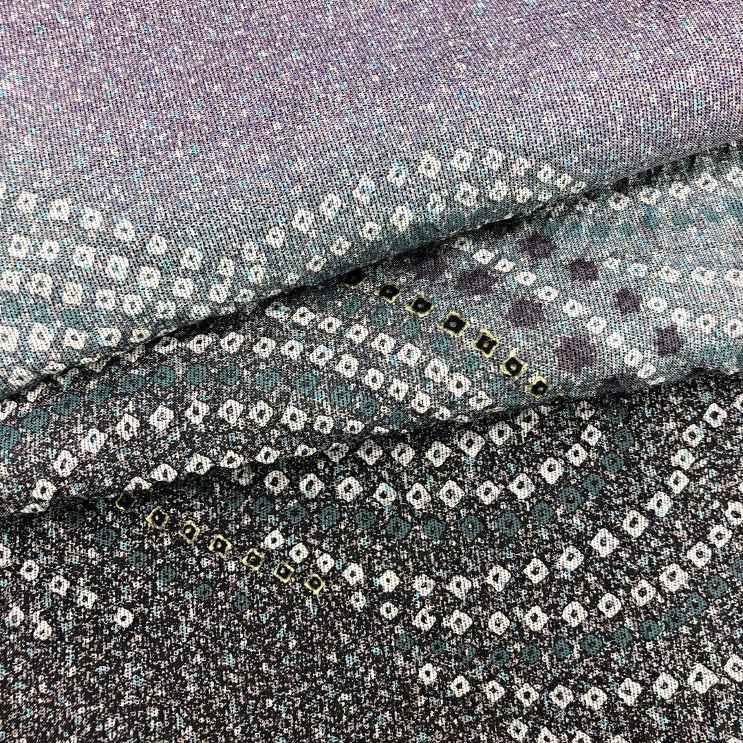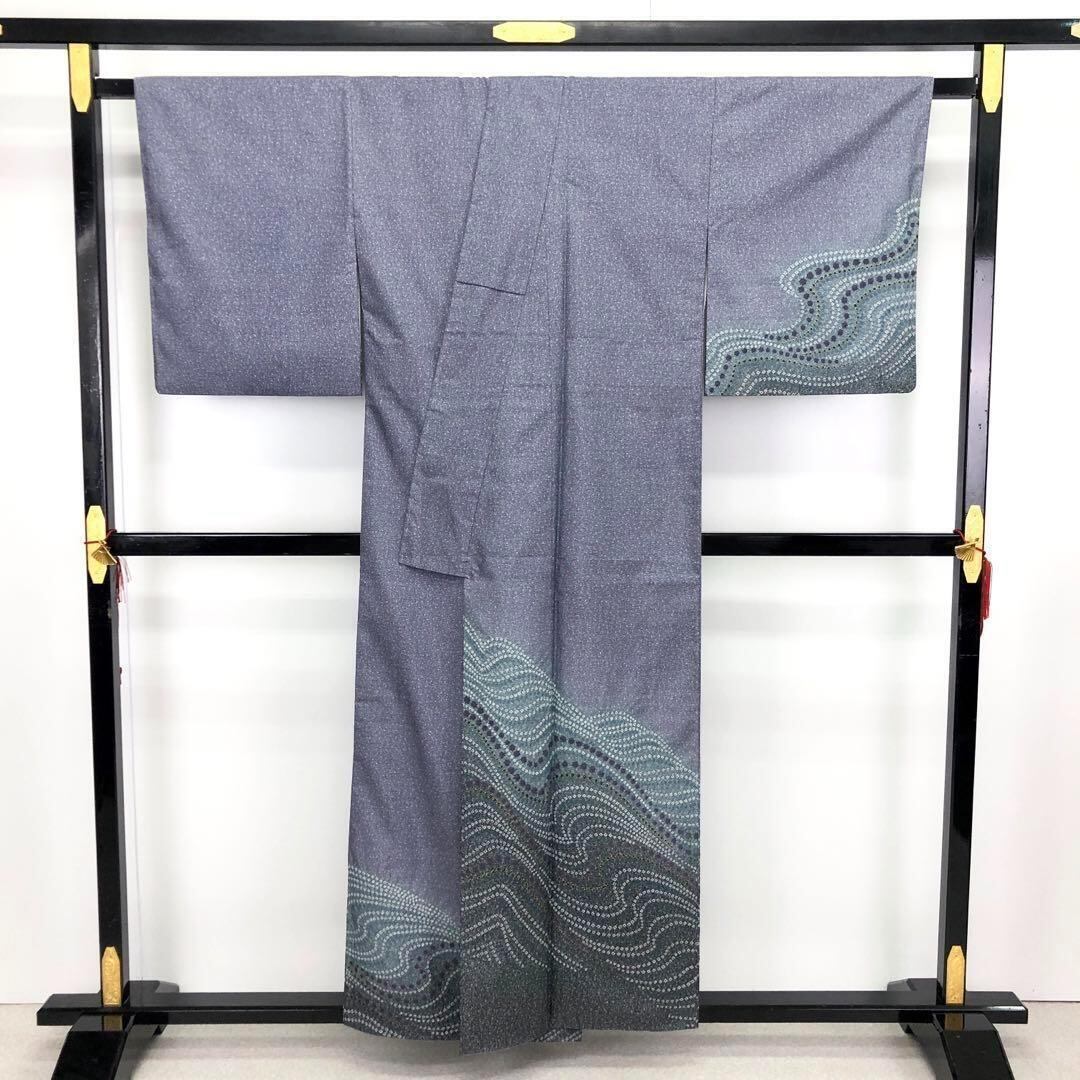 叩き染の青紫色ベースのお色味に鹿の子模様に美しいグラデーションの絞り柄でデザインされた素敵なお品でございます。