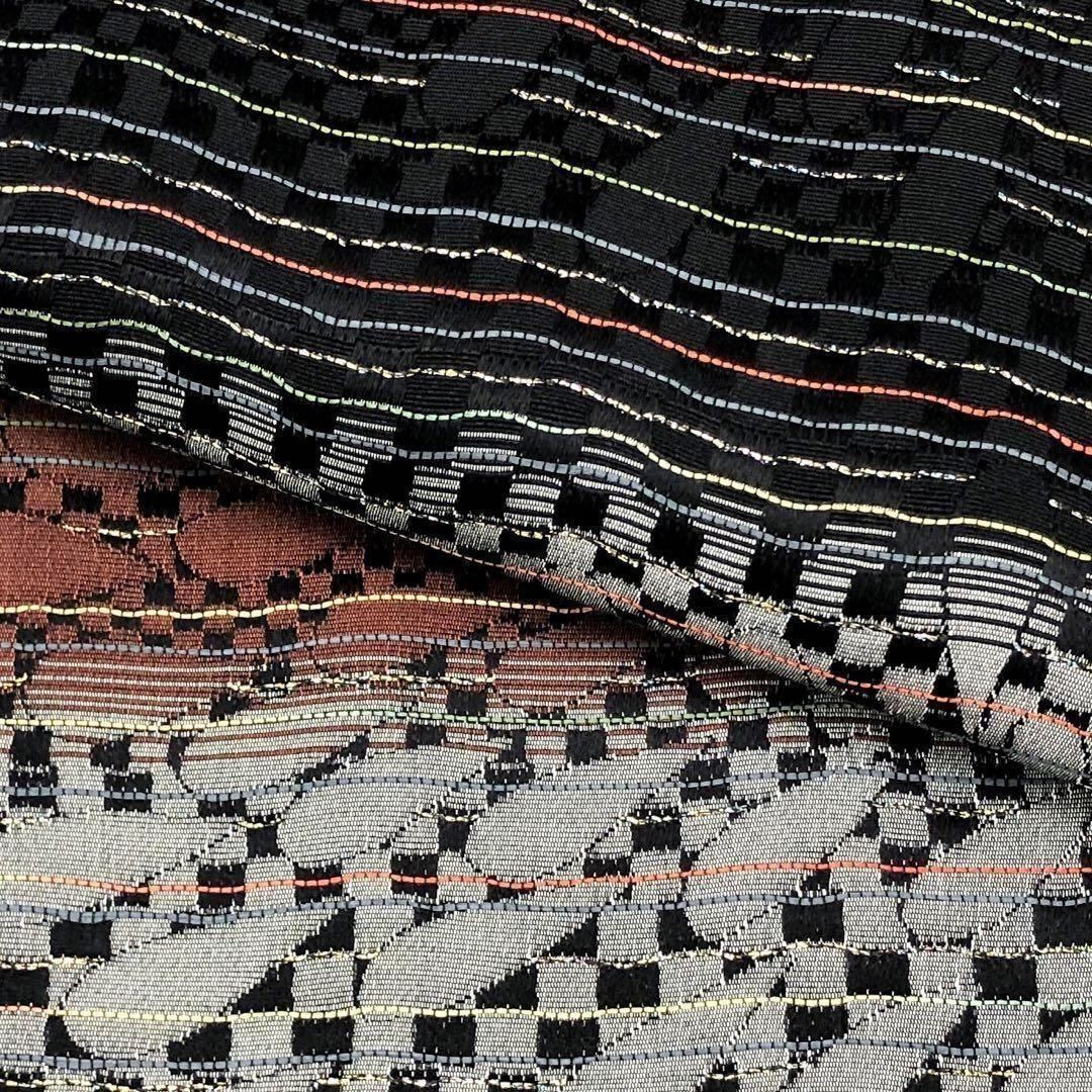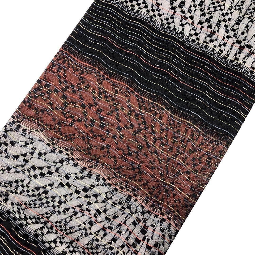 袋帯 草木染 モダン柄 横縞市松模様 金糸 O-1100 着物 きもの kimono 和服 和装 中古 リサイクル着物 【送料無料】