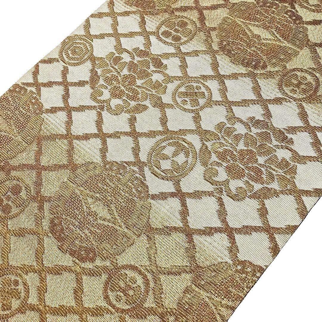 金色ベースのグラデーションが美しい金華山織、格子に蝶々花柄模様がデザインされた素敵なお品でございます。