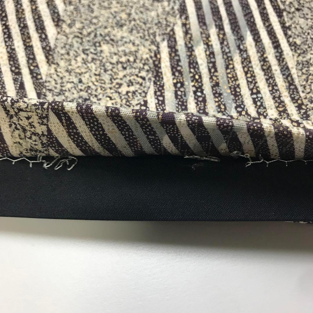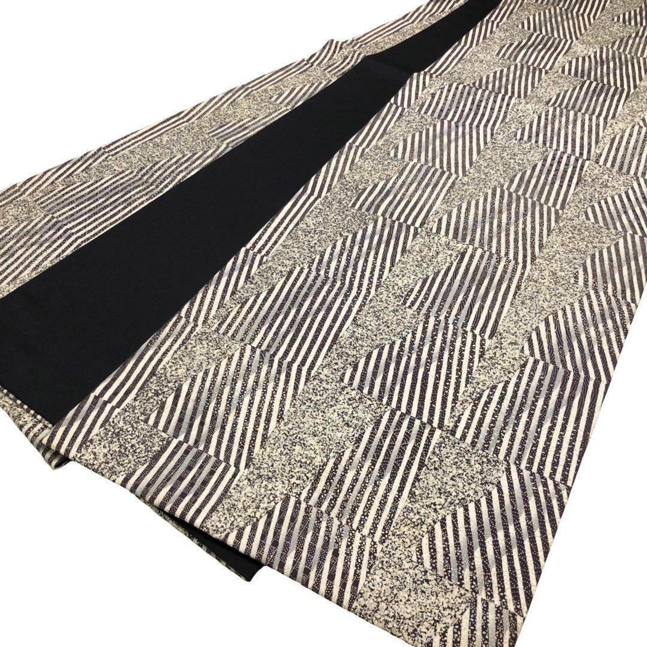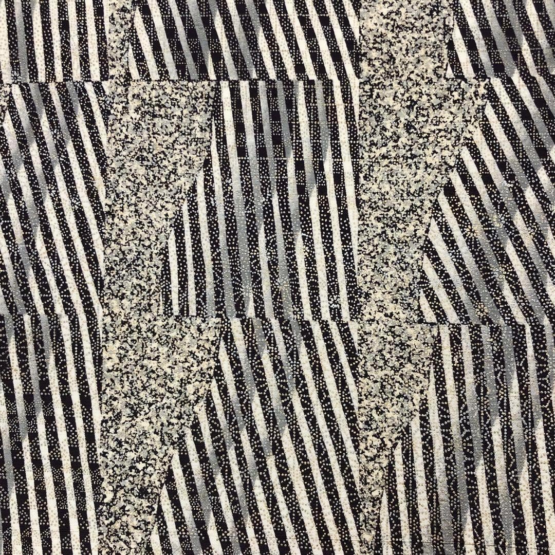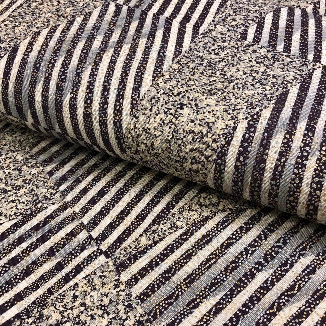 縞模様に金銀彩、独特のモダンな柄裄でセンスを感じる素敵なデザインのお品でございます。