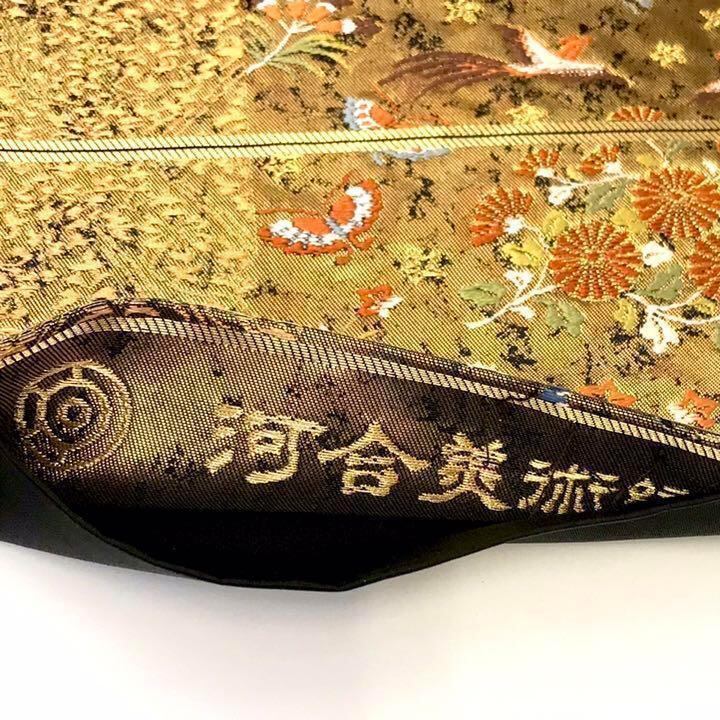 袋帯 河合美術織物 四季の花々 鳳凰 蝶々 金色 金糸 O-1140 着物 きもの kimono 和服 和装 中古 リサイクル着物 【送料無料】