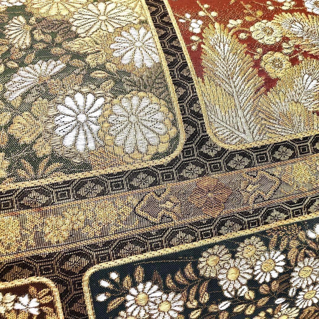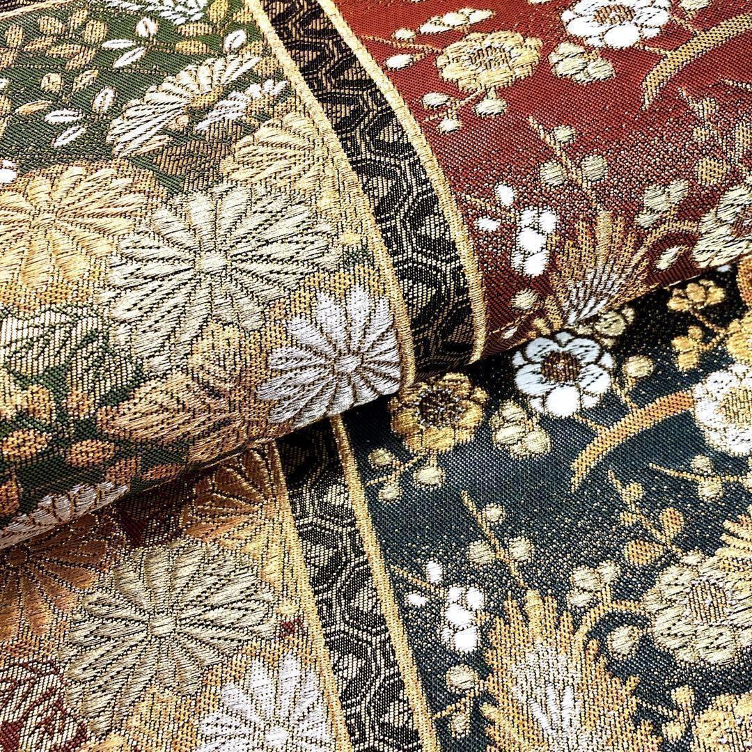 豊雅錦、蒔絵瑞祥文と題された金糸を使った煌びやかな多様な花柄模様がデザインされた素敵なお品でございます。
