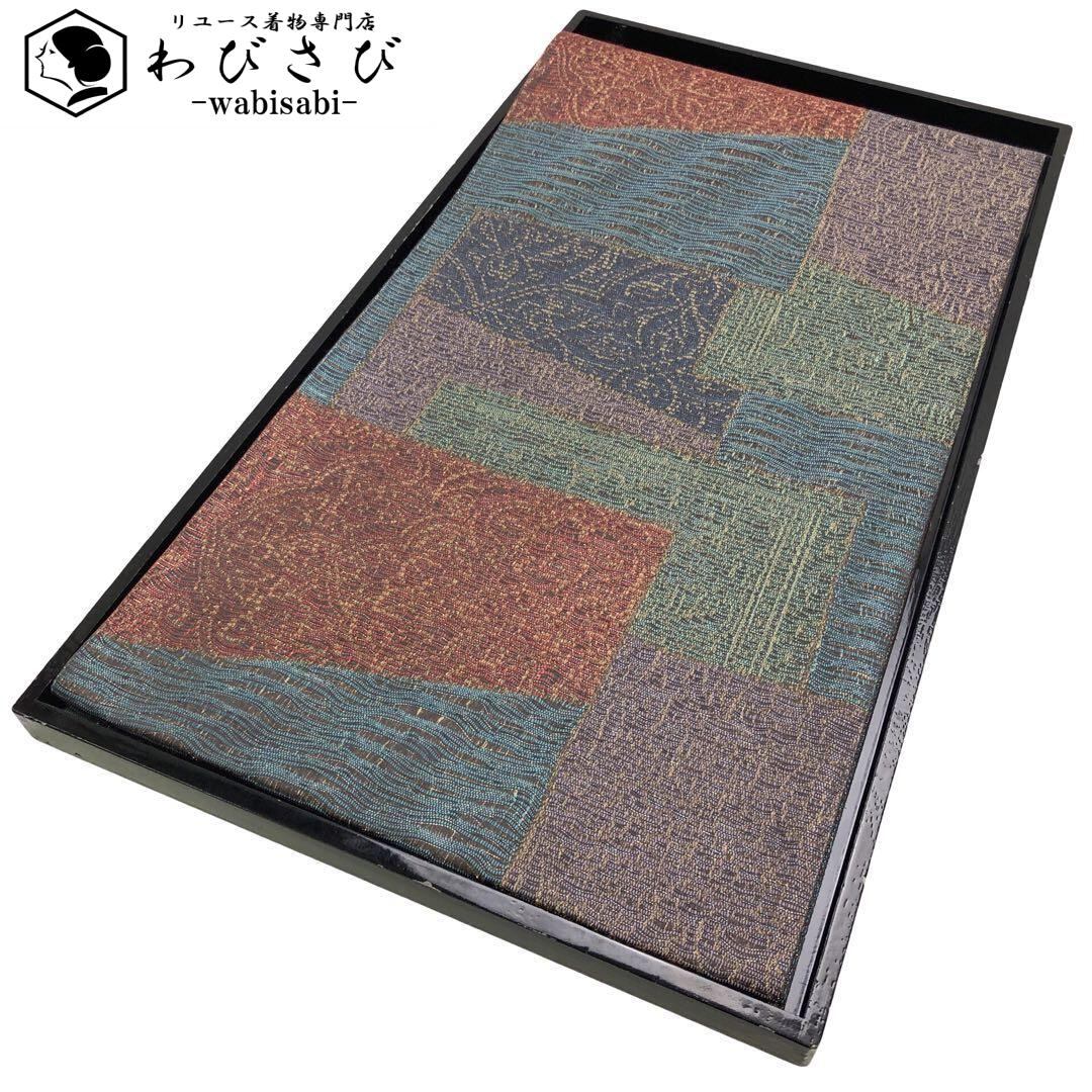 袋帯 本泥染 彩羅紗 色彩豊かな柄模様 金糸 O-1478 着物 きもの kimono 和服 和装 中古 リサイクル着物 【送料無料】