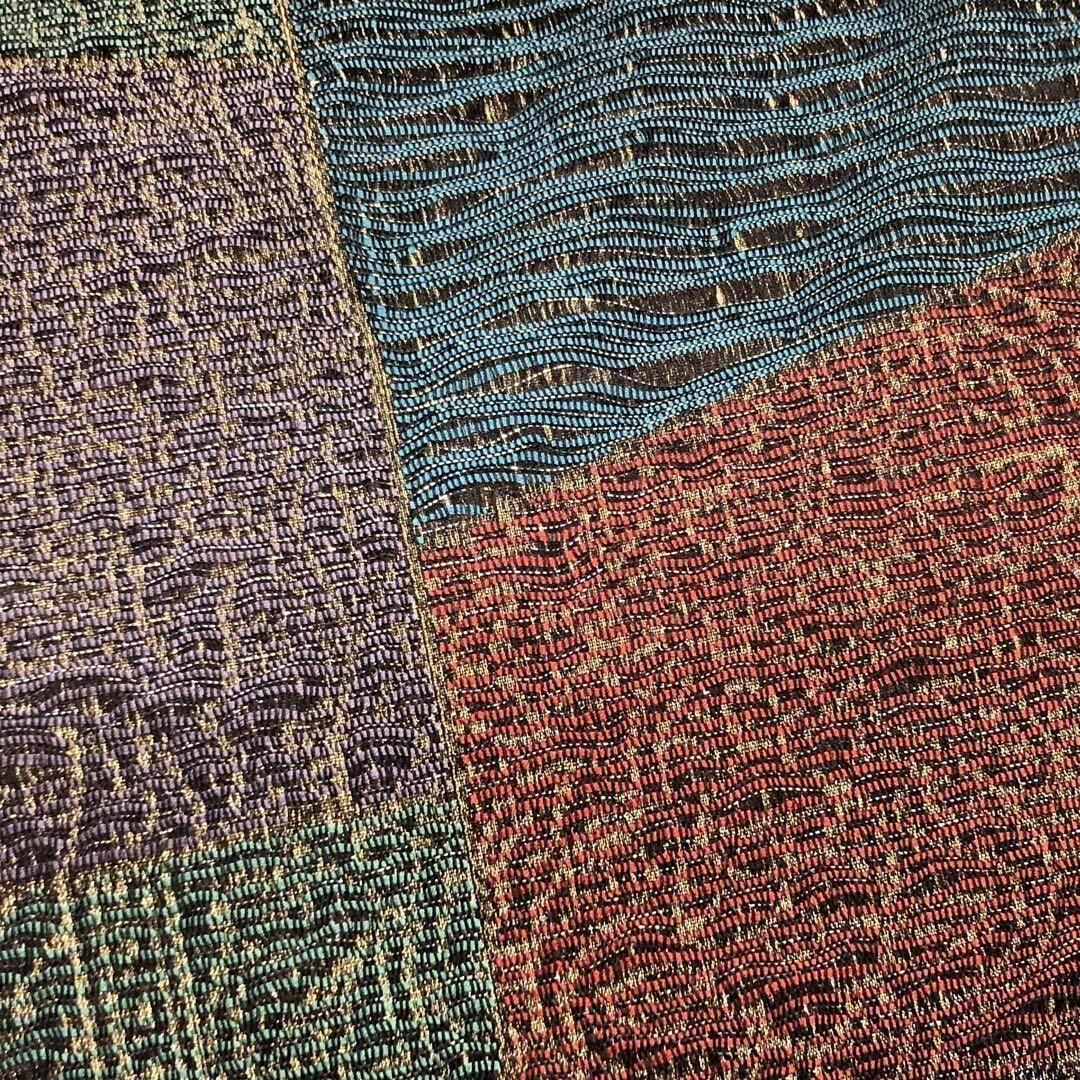 彩羅紗と題された金糸を使った本泥染の落ち着きも感じられる色彩豊かなお色味の柄裄が素敵なお品でございます。