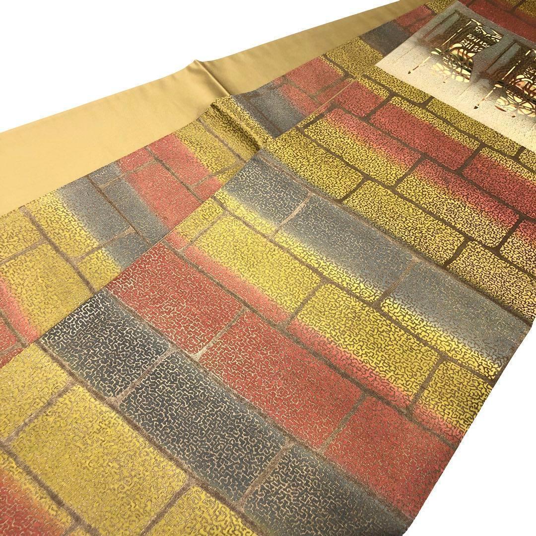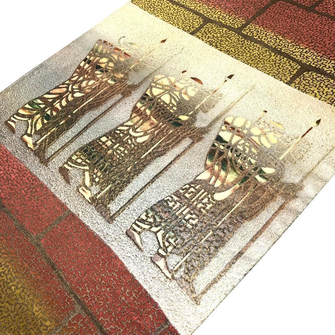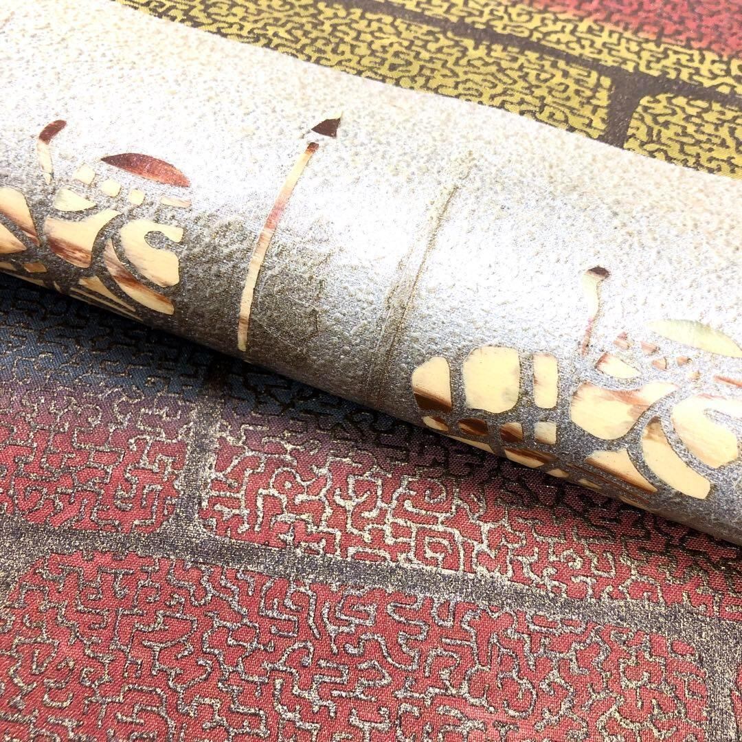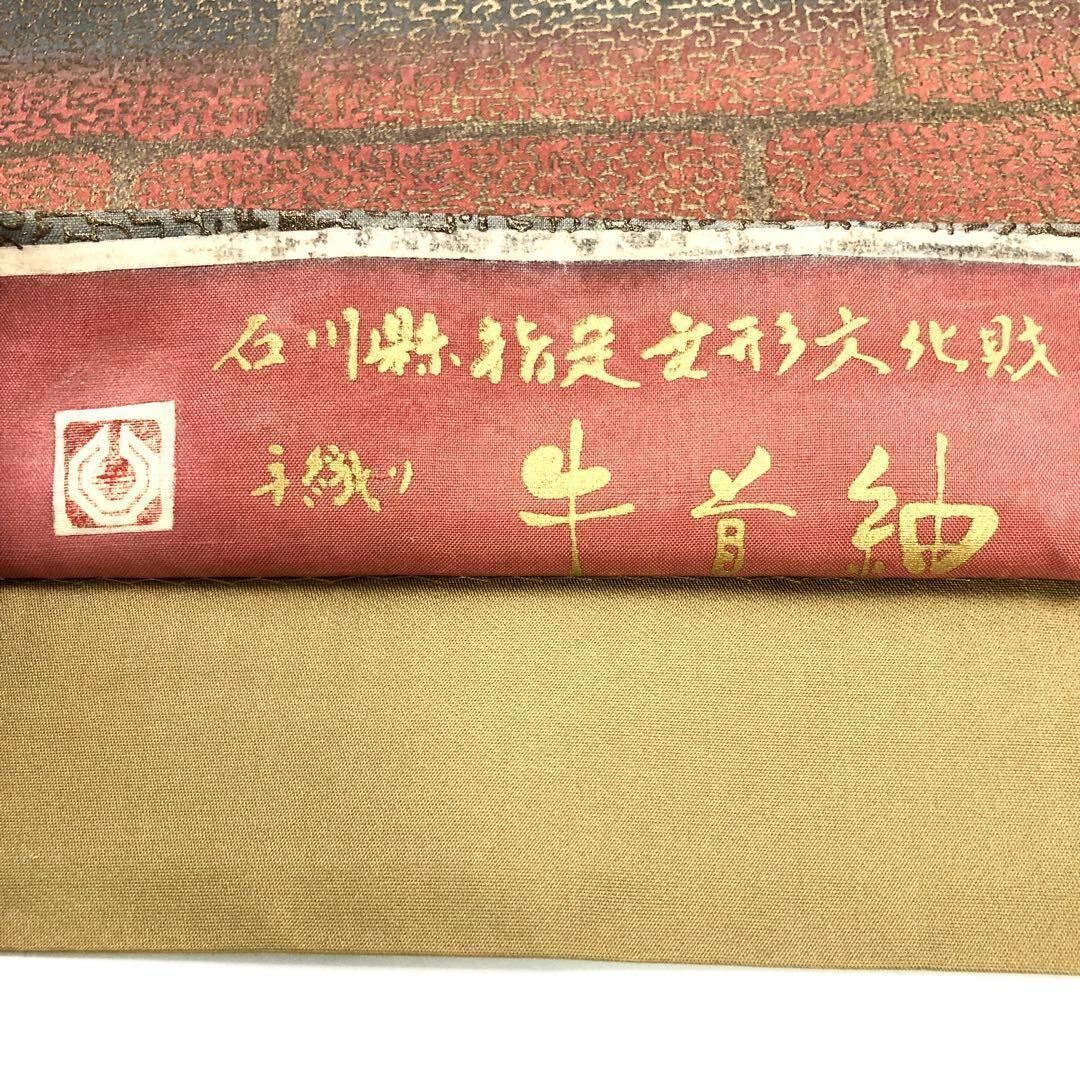 袋帯 牛首紬 白山工房 石川県指定無形文化財 手織 証紙付 O-1617 着物 きもの kimono 和服 和装 中古 リサイクル着物 【送料無料】