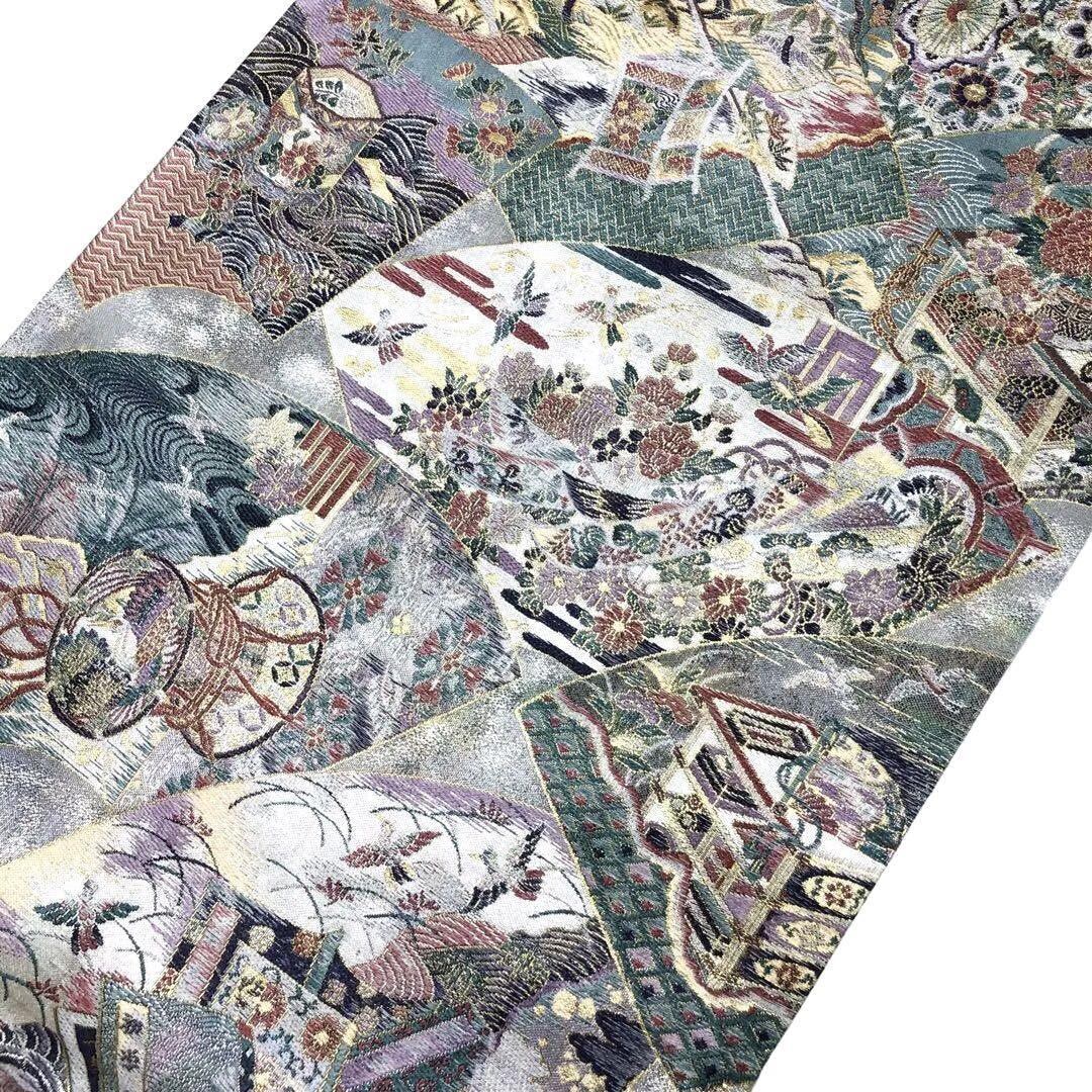 袋帯 鳥 鼓 冊子 貝桶 花柄 鼓 地紙紋 金彩 金銀糸 O-1780 着物 きもの kimono 和服 和装 中古 リサイクル着物 【送料無料】