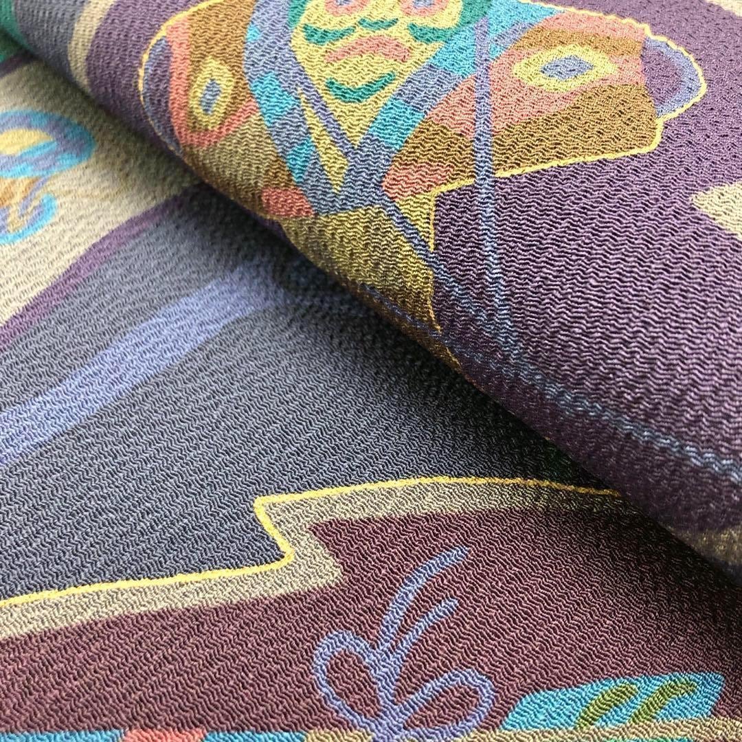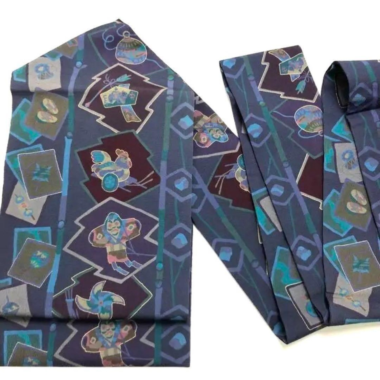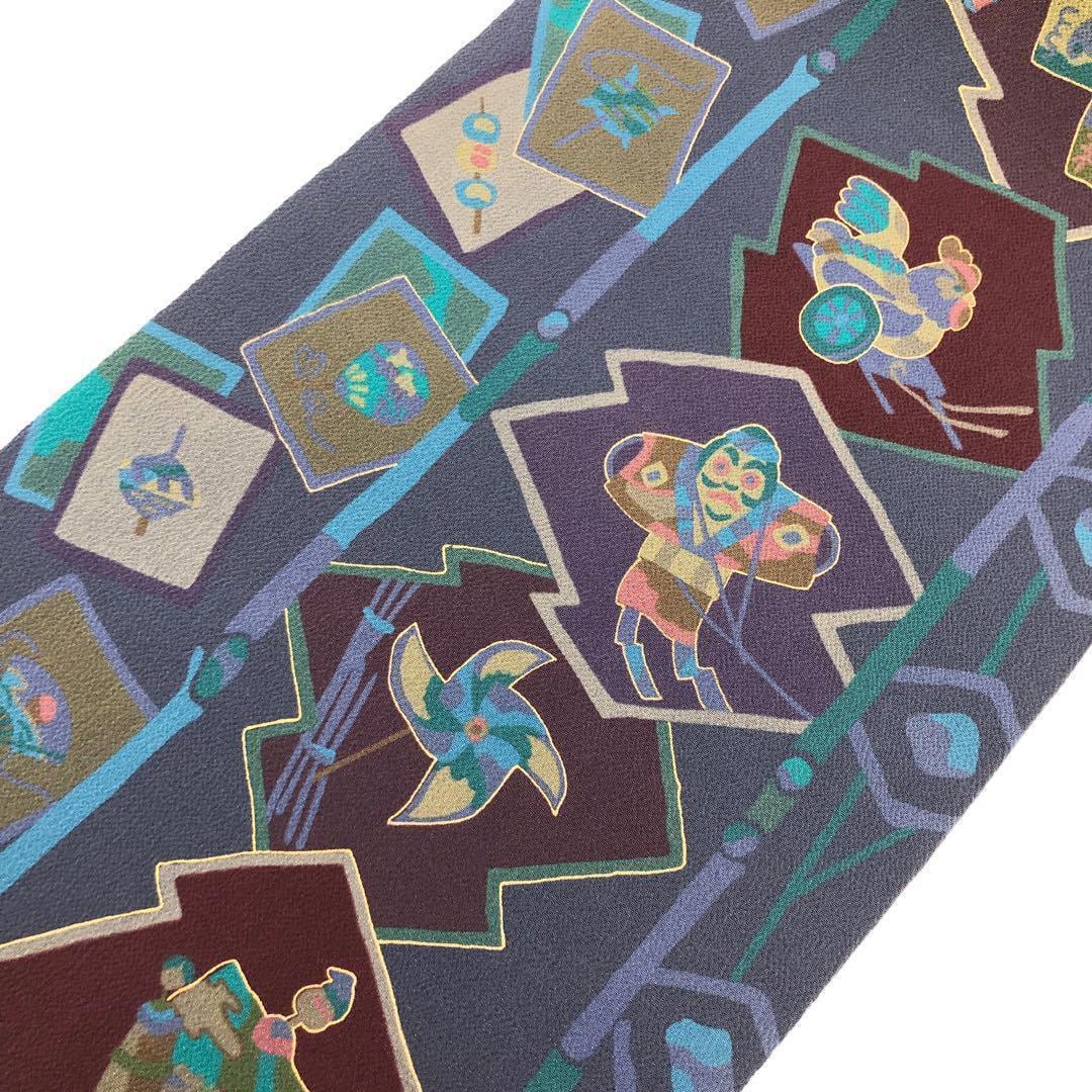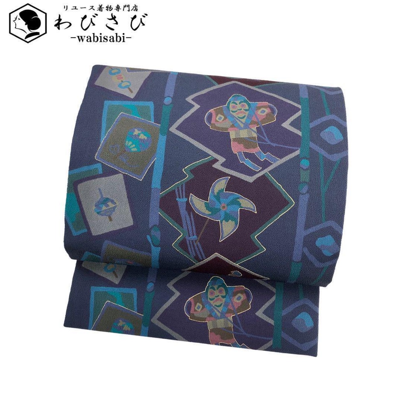 色味の良い縮緬地に風車や凧などいろいろな和玩具がデザインされた素敵なお品でございます。