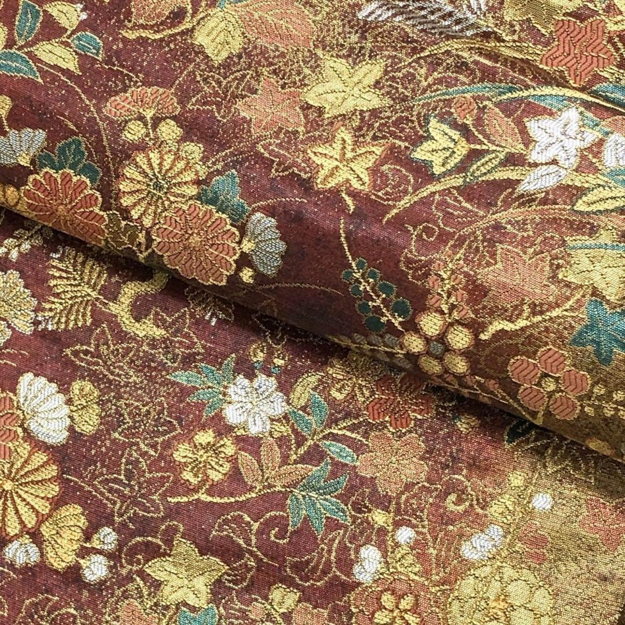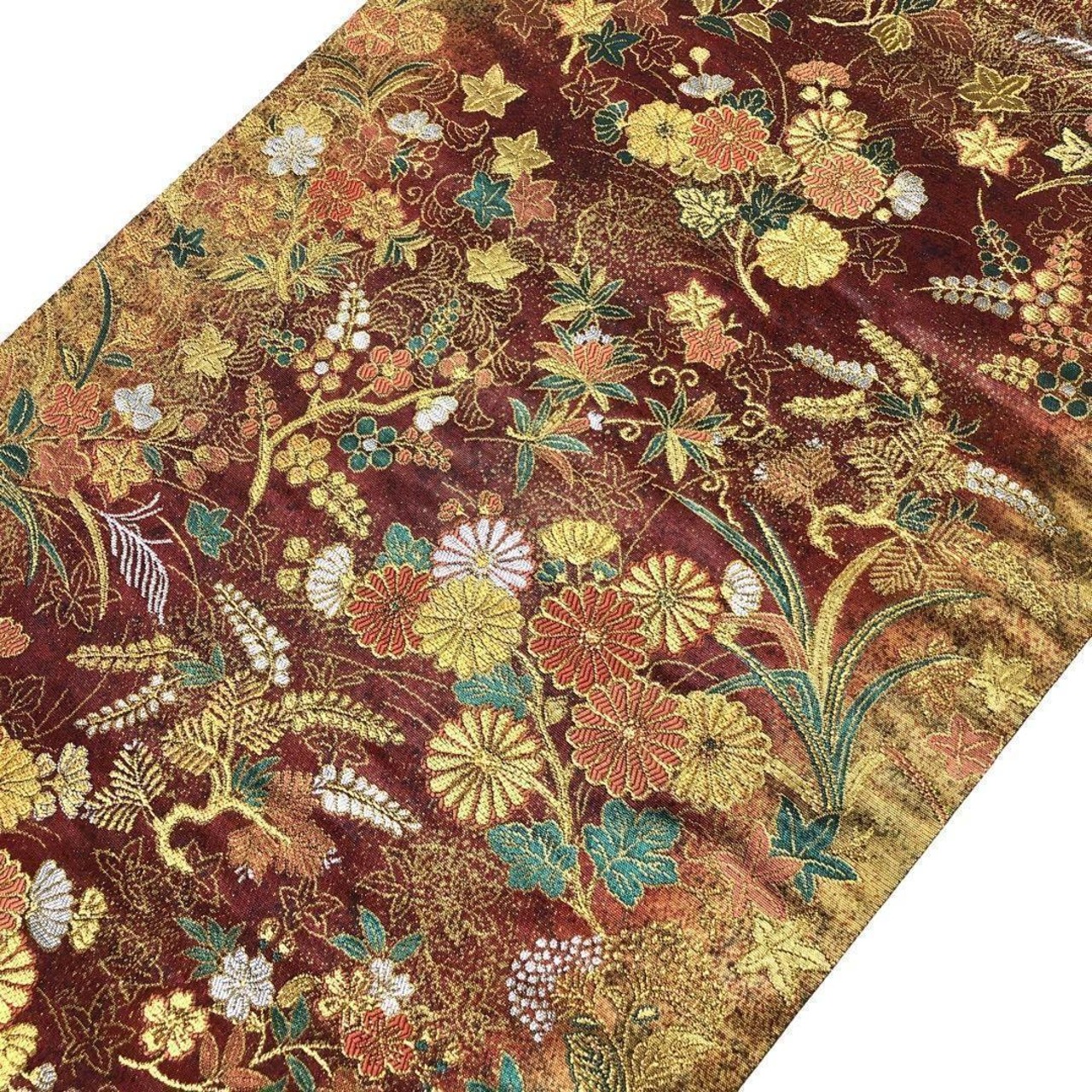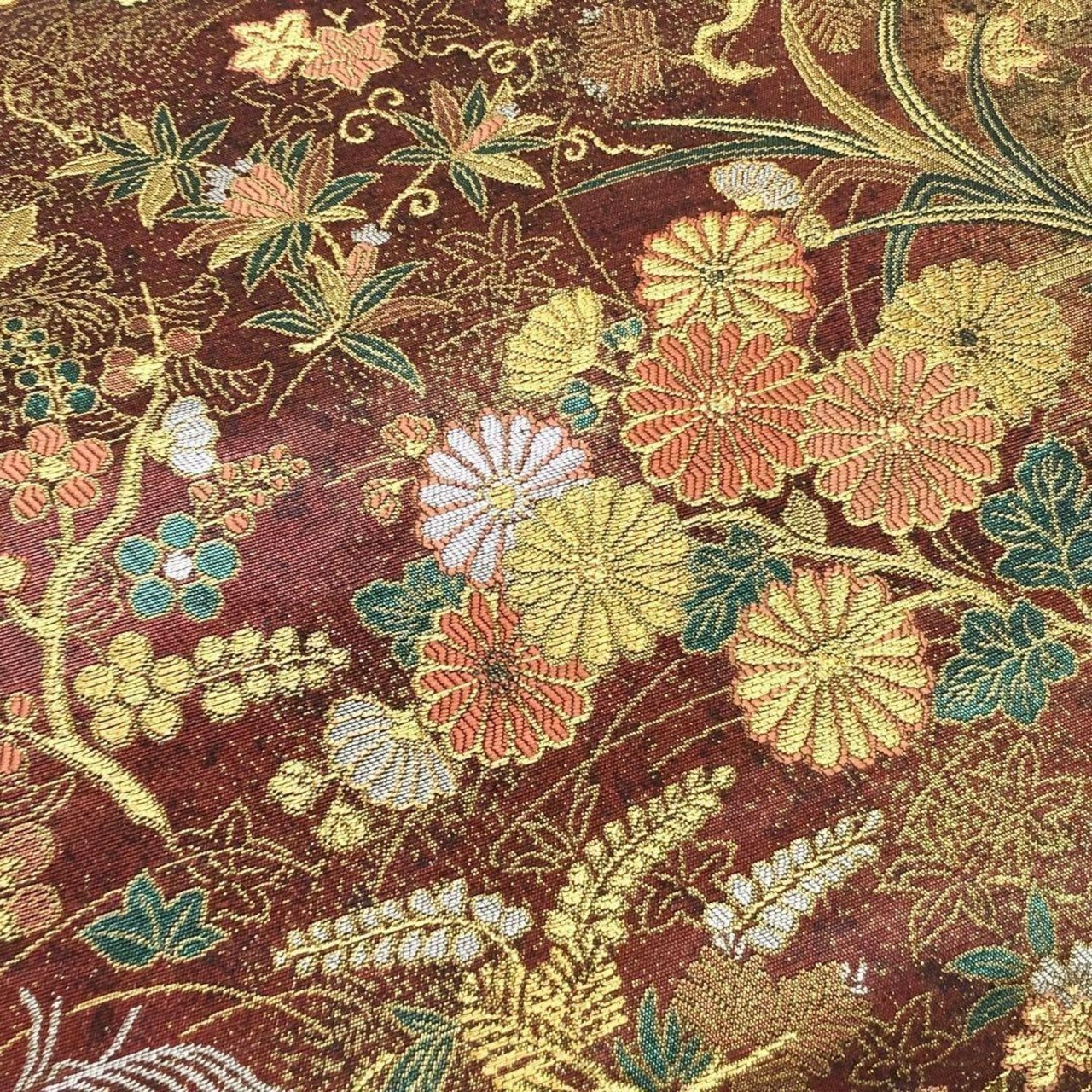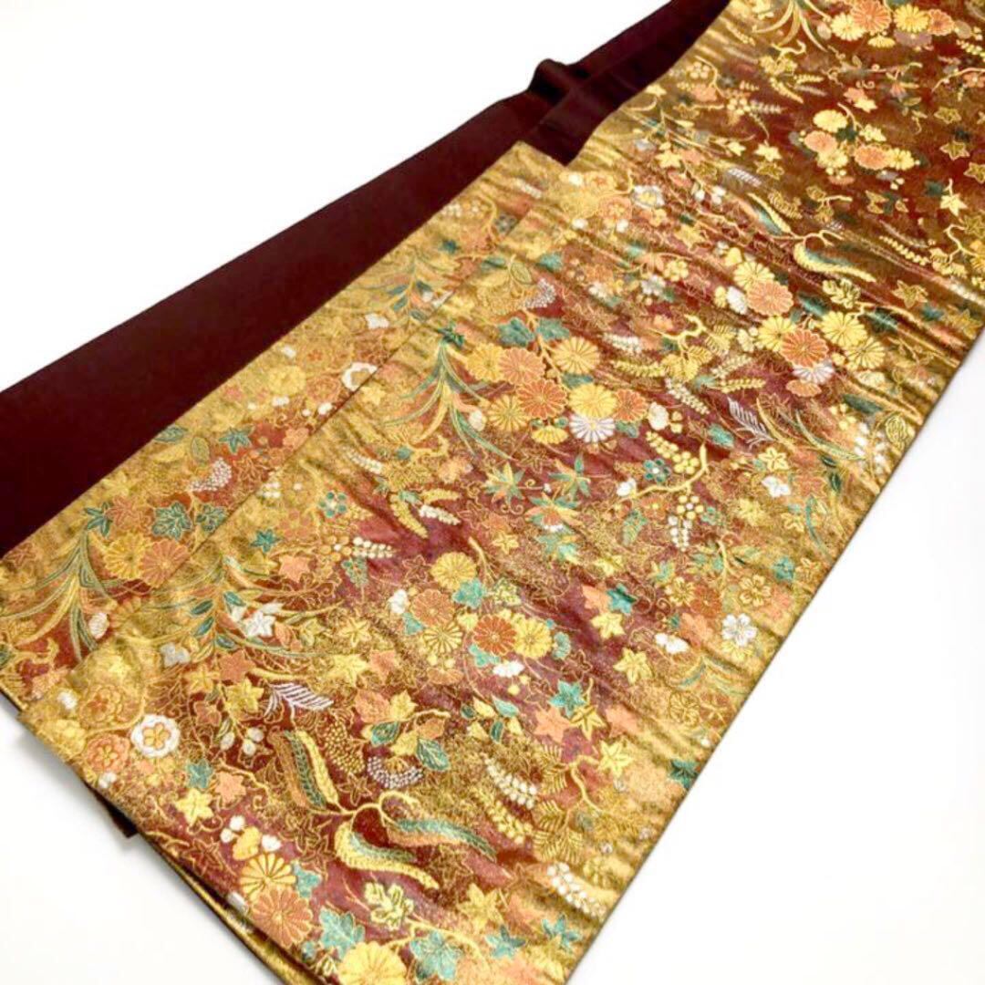 金銀糸が使われた煌びやかな四季の花々が美しいお品でございます。