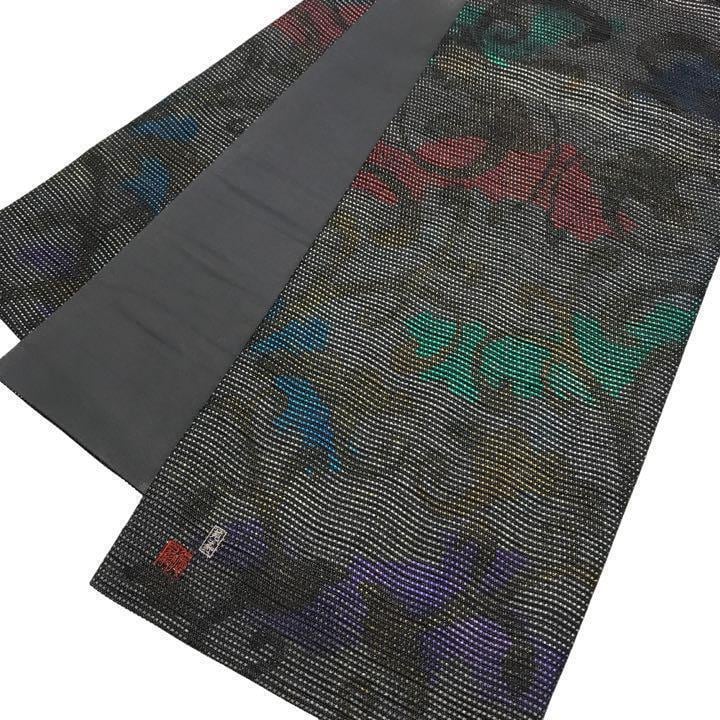 赤、青、紫、緑、金などプラチナ糸を贅沢に使った色鮮やかな織模様、極上のお品でございます。