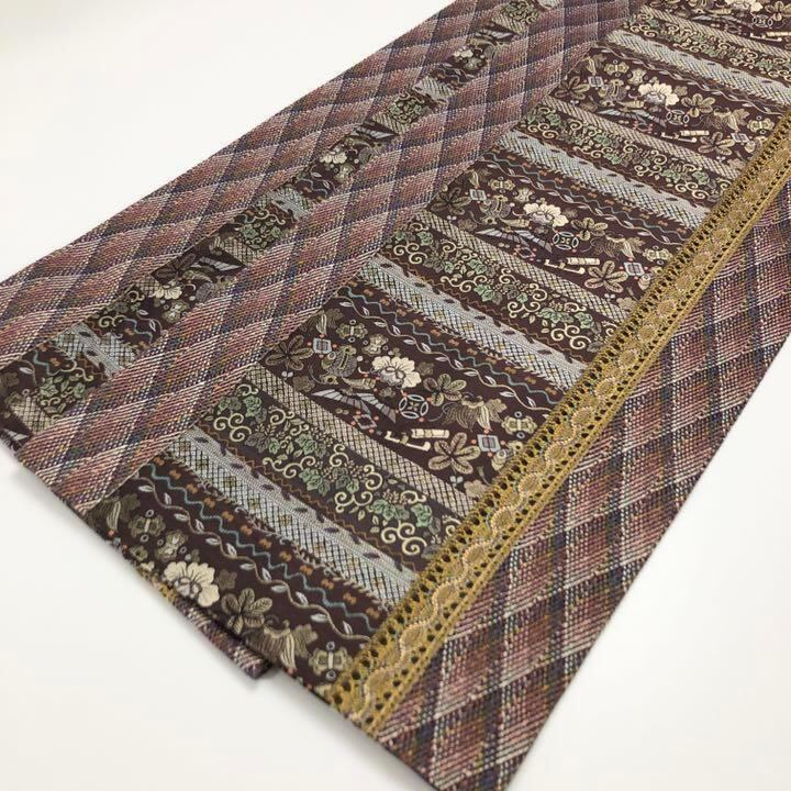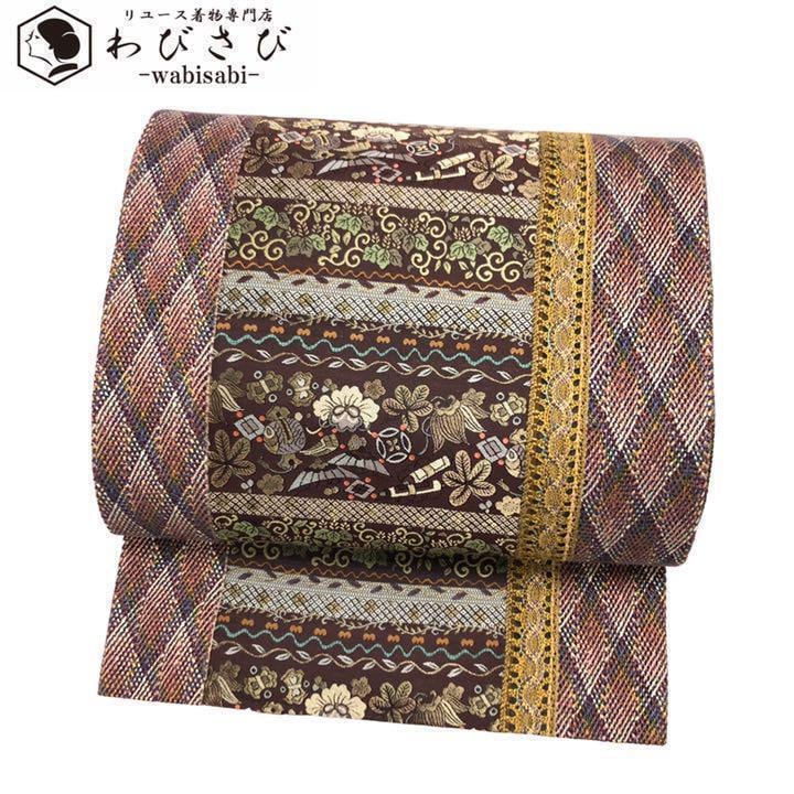袋帯 リボン織 花柄に宝尽くし ガード加工 O-2023