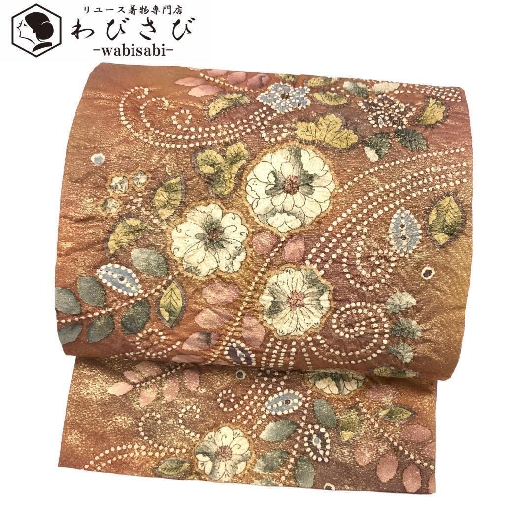 樺色の落ち着いた上品なお色味に立体感のある膨れ織の辻ヶ花模様が美しいお品でございます。