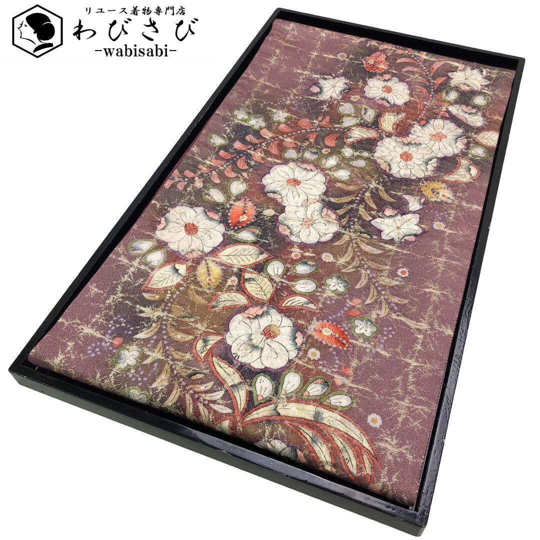 袋帯 作家物 美しい辻が花 銀通し 金彩 葡萄酒色 O-2121 着物 きもの kimono 和服 和装 中古 リサイクル着物 【送料無料】