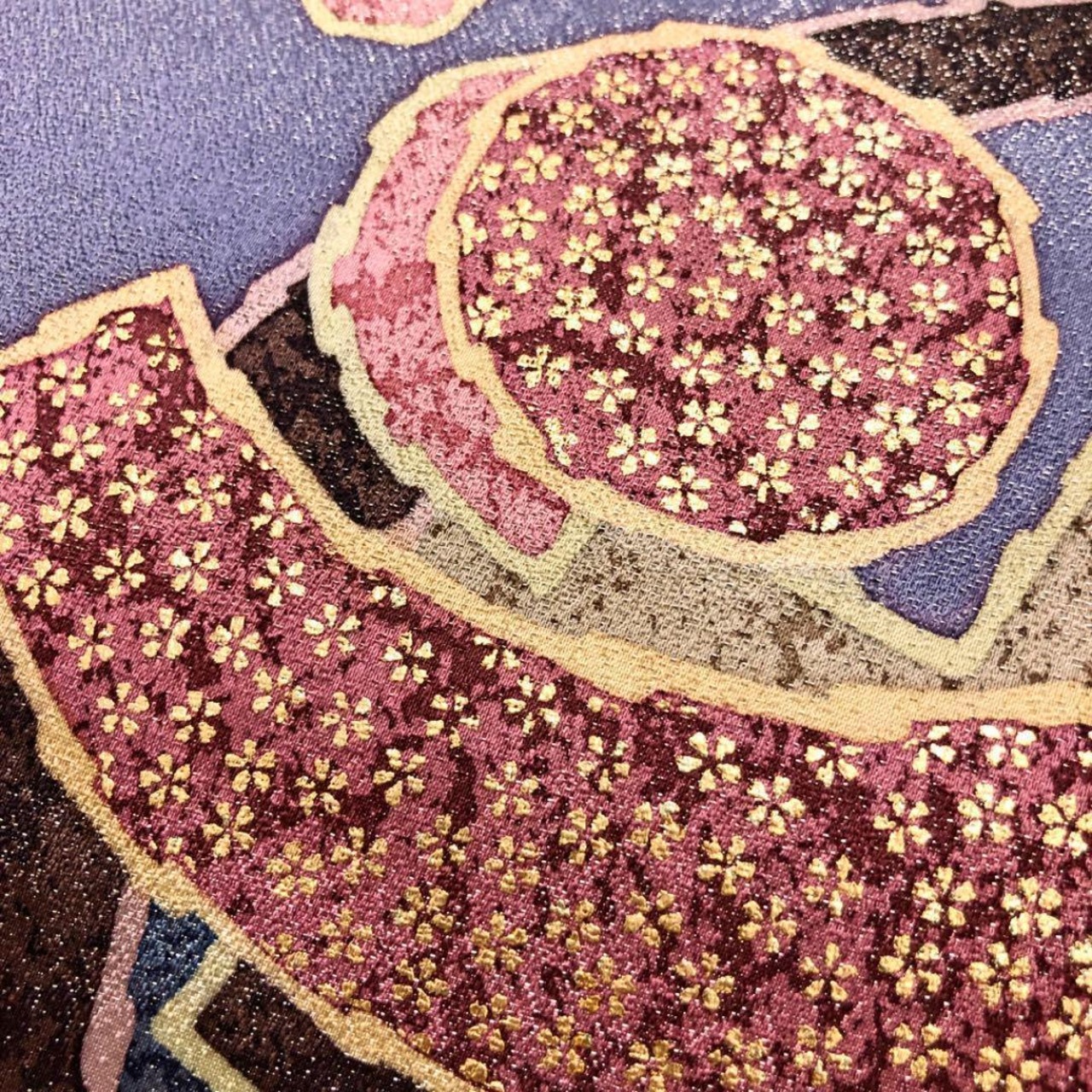 小さな桜の花や金銀彩で美しいデザインされた抽象模様が素敵なお品でございます。