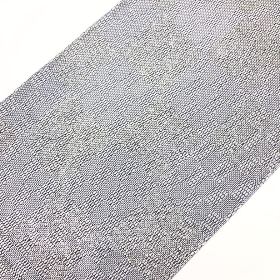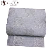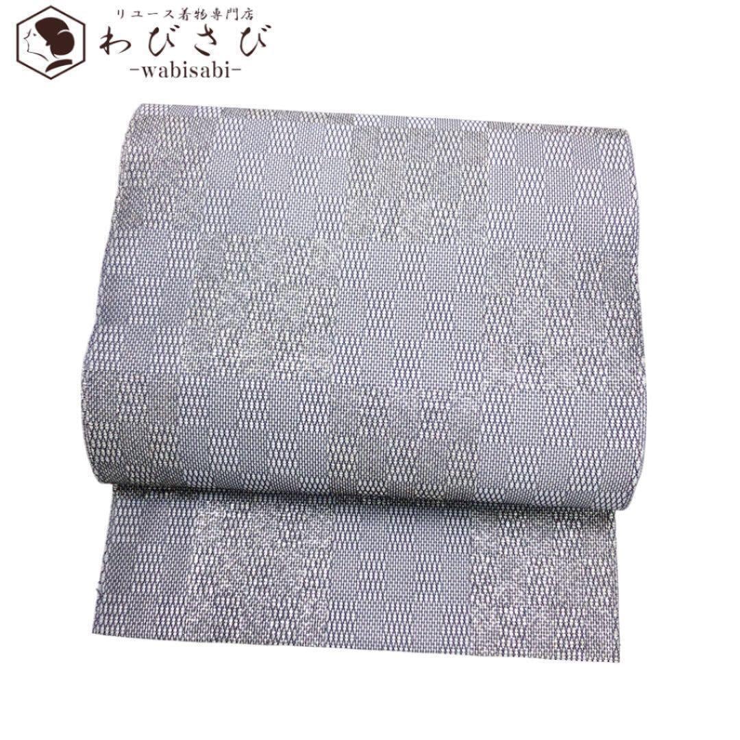 袋帯 変わり格子柄 市松模様 鈍紫色 銀糸 O-2171